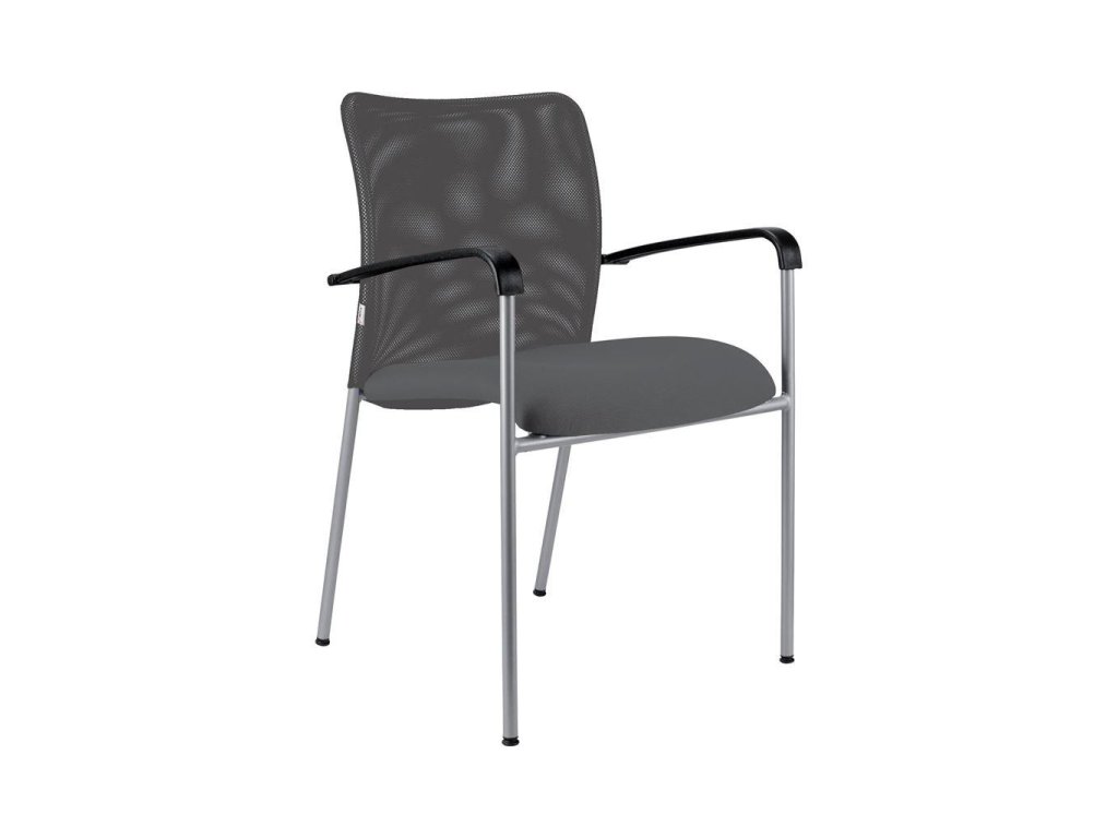• Stohovateľná konferenčná stolička s látkovým sedákom a sieťkovým operadlom moderného dizajnu.