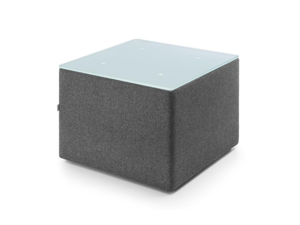Konferenčný stolík Vancouver Oto, štvorec, mliečne tvrdené sklo, š.54 x h.54 x v.40 cm, látka Next NX-14 tmavosivá