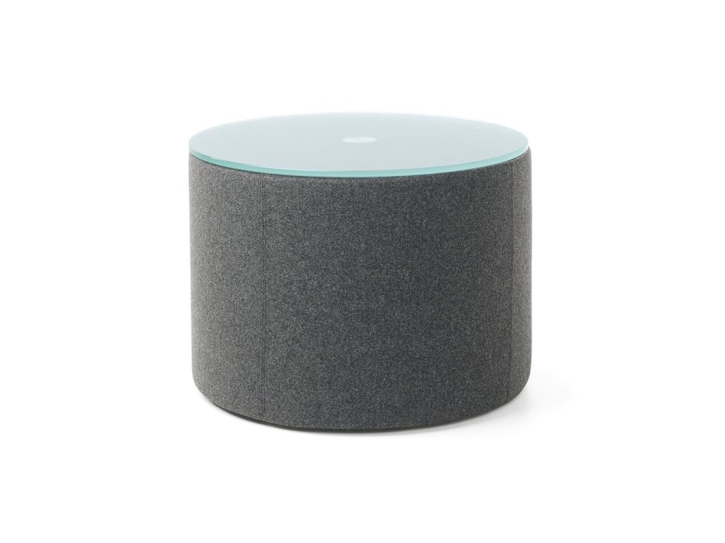 Konferenčný stolík Vancouver Oto, valec, mliečne trvdené sklo, p.54 x v.40 cm, látka Next NX-14 tmavosivá