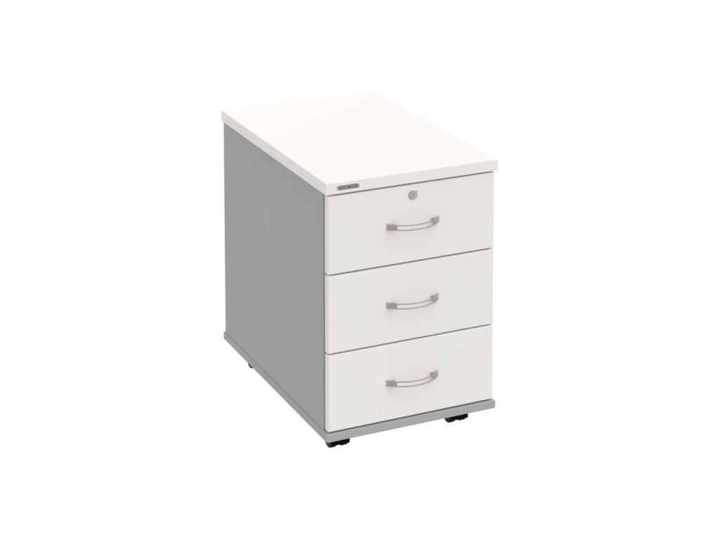 Kontajnery - všetko uložené a vždy poruke. Kontajnery sa väčšinou umiestňujú pod stoly. Mobilné modely sú vybavené kolieskami, je možné ich premiestniť podľa potreby. Základným materiálom korpusov je kvalitná laminovaná drevotriesková doska hrúbky 18 mm. Pre dlhšiu životnosť je na horný diel korpusu použitá doska, ktorej hrúbka je 25 mm. Korpusy a čelá zásuviek sú chránené proti poškodeniu hranou ABS 2 mm. Horná doska ma hĺbku 80. 3-zásuvkový kontajner má uzamykatelnú iba 1 zásuvku. Zásuvky sú z plastu, ktorý je ľahko umývateľný a vhodný pre jednoduchú údržbu. Praktickou súčasťou vrchnej zásuvky je prehľadný organizér a priestorové deliace priečky. Vaše ceruzky, sponky a ďalšie kancelárske potreby budú vždy na poriadku. Organizér a deliace priečky sú súčasťou každého kontajnera. Na kontajnery Hobis sa vzťahuje päťročná záruka.