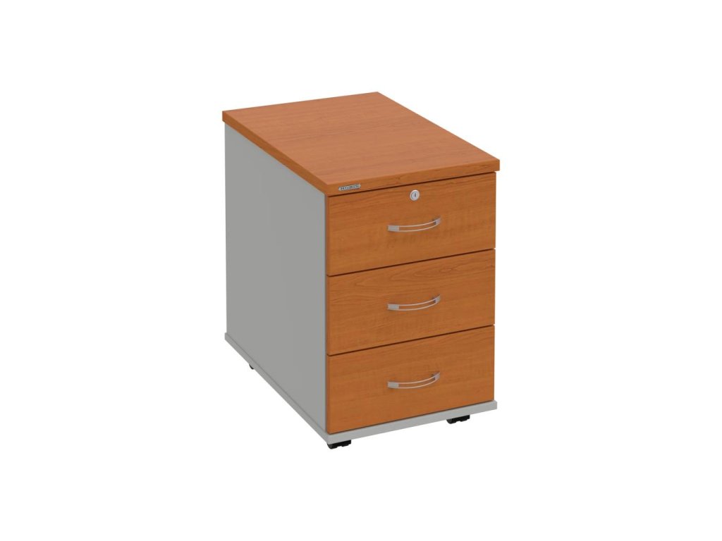 Kontajnery - všetko uložené a vždy poruke. Kontajnery sa väčšinou umiestňujú pod stoly. Mobilné modely sú vybavené kolieskami, je možné ich premiestniť podľa potreby. Základným materiálom korpusov je kvalitná laminovaná drevotriesková doska hrúbky 18 mm. Pre dlhšiu životnosť je na horný diel korpusu použitá doska, ktorej hrúbka je 25 mm. Korpusy a čelá zásuviek sú chránené proti poškodeniu hranou ABS 2 mm. Horná doska ma hĺbku 80. 3-zásuvkový kontajner má uzamykatelnú iba 1 zásuvku. Zásuvky sú z plastu, ktorý je ľahko umývateľný a vhodný pre jednoduchú údržbu. Praktickou súčasťou vrchnej zásuvky je prehľadný organizér a priestorové deliace priečky. Vaše ceruzky, sponky a ďalšie kancelárske potreby budú vždy na poriadku. Organizér a deliace priečky sú súčasťou každého kontajnera. Na kontajnery Hobis sa vzťahuje päťročná záruka.