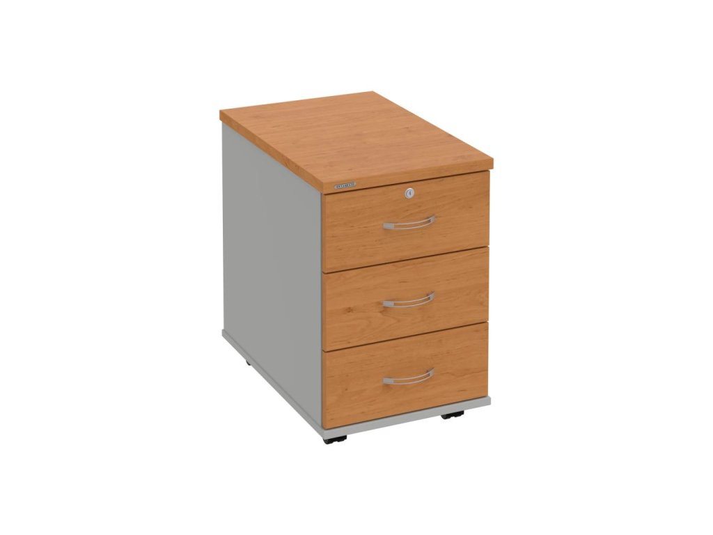 Kontajnery - všetko uložené a vždy poruke. Kontajnery sa väčšinou umiestňujú pod stoly. Mobilné modely sú vybavené kolieskami, je možné ich premiestniť podľa potreby. Základným materiálom korpusov je kvalitná laminovaná drevotriesková doska hrúbky 18 mm. Pre dlhšiu životnosť je na horný diel korpusu použitá doska, ktorej hrúbka je 25 mm. Korpusy a čelá zásuviek sú chránené proti poškodeniu hranou ABS 2 mm. Horná doska ma hĺbku 80. 3-zásuvkový kontajner má uzamykatelnú iba 1 zásuvku. Zásuvky sú z plastu, ktorý je ľahko umývateľný a vhodný pre jednoduchú údržbu. Praktickou súčasťou vrchnej zásuvky je prehľadný organizér a priestorové deliace priečky. Vaše ceruzky, sponky a ďalšie kancelárske potreby budú vždy na poriadku. Organizér a deliace priečky sú súčasťou každého kontajnera. Na kontajnery Hobis sa vzťahuje päťročná záruka.