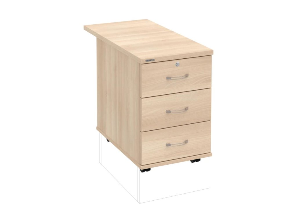 Kontajnery - všetko uložené a vždy poruke. Kontajnery sa väčšinou umiestňujú pod stoly. Mobilné modely sú vybavené kolieskami, je možné ich premiestniť podľa potreby. Základným materiálom korpusov je kvalitná laminovaná drevotriesková doska hrúbky 18 mm. Pre dlhšiu životnosť je na horný diel korpusu použitá doska, ktorej hrúbka je 25 mm. Korpusy a čelá zásuviek sú chránené proti poškodeniu hranou ABS 2 mm. Horná doska ma hĺbku 80. 3-zásuvkový kontajner má uzamykatelnú iba 1 zásuvku. Zásuvky sú z plastu, ktorý je ľahko umývateľný a vhodný pre jednoduchú údržbu. Praktickou súčasťou vrchnej zásuvky je prehľadný organizér a priestorové deliace priečky. Vaše ceruzky, sponky a ďalšie kancelárske potreby budú vždy na poriadku. Organizér a deliace priečky sú súčasťou každého kontajnera. Na kontajnery Hobis sa vzťahuje päťročná záruka.
