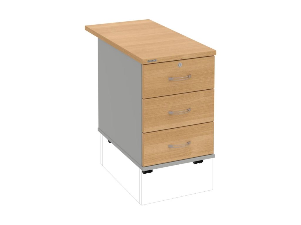 Kontajnery - všetko uložené a vždy poruke. Kontajnery sa väčšinou umiestňujú pod stoly. Mobilné modely sú vybavené kolieskami, je možné ich premiestniť podľa potreby. Základným materiálom korpusov je kvalitná laminovaná drevotriesková doska hrúbky 18 mm. Pre dlhšiu životnosť je na horný diel korpusu použitá doska, ktorej hrúbka je 25 mm. Korpusy a čelá zásuviek sú chránené proti poškodeniu hranou ABS 2 mm. Horná doska ma hĺbku 80. 3-zásuvkový kontajner má uzamykatelnú iba 1 zásuvku. Zásuvky sú z plastu, ktorý je ľahko umývateľný a vhodný pre jednoduchú údržbu. Praktickou súčasťou vrchnej zásuvky je prehľadný organizér a priestorové deliace priečky. Vaše ceruzky, sponky a ďalšie kancelárske potreby budú vždy na poriadku. Organizér a deliace priečky sú súčasťou každého kontajnera. Na kontajnery Hobis sa vzťahuje päťročná záruka.