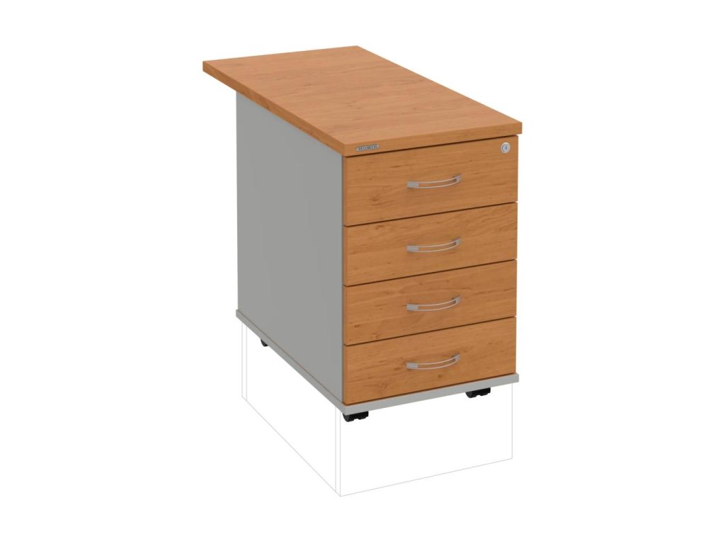 Kontajnery - všetko uložené a vždy poruke. Kontajnery sa väčšinou umiestňujú pod stoly. Mobilné modely sú vybavené kolieskami, je možné ich premiestniť podľa potreby. Základným materiálom korpusov je kvalitná laminovaná drevotriesková doska hrúbky 18 mm. Pre dlhšiu životnosť je na horný diel korpusu použitá doska, ktorej hrúbka je 25 mm. Korpusy a čelá zásuviek sú chránené proti poškodeniu hranou ABS 2 mm. Horná doska ma hĺbku 80 cm. Kontajnery sú vybavené zámkom s centrálnym zamykaním. Vďaka integrovanému systému STOP-CONTROL s centrálnym zámkom u väčšiny kontajnerov sa nemusíte báť prevrhnutiu kontajnera alebo prípadného privretia ruky. Systém zaručí, že pri otvorení jednej zásuvky sa ostatné zásuvky automaticky zablokujú. Zásuvky sú z plastu, ktorý je ľahko umývateľný a vhodný pre jednoduchú údržbu. Praktickou súčasťou vrchnej zásuvky je prehľadný organizér a priestorové deliace priečky. Vaše ceruzky, sponky a ďalšie kancelárske potreby budú vždy na poriadku. Organizér a deliace priečky sú súčasťou každého kontajnera. Na kontajnery Hobis sa vzťahuje päťročná záruka.