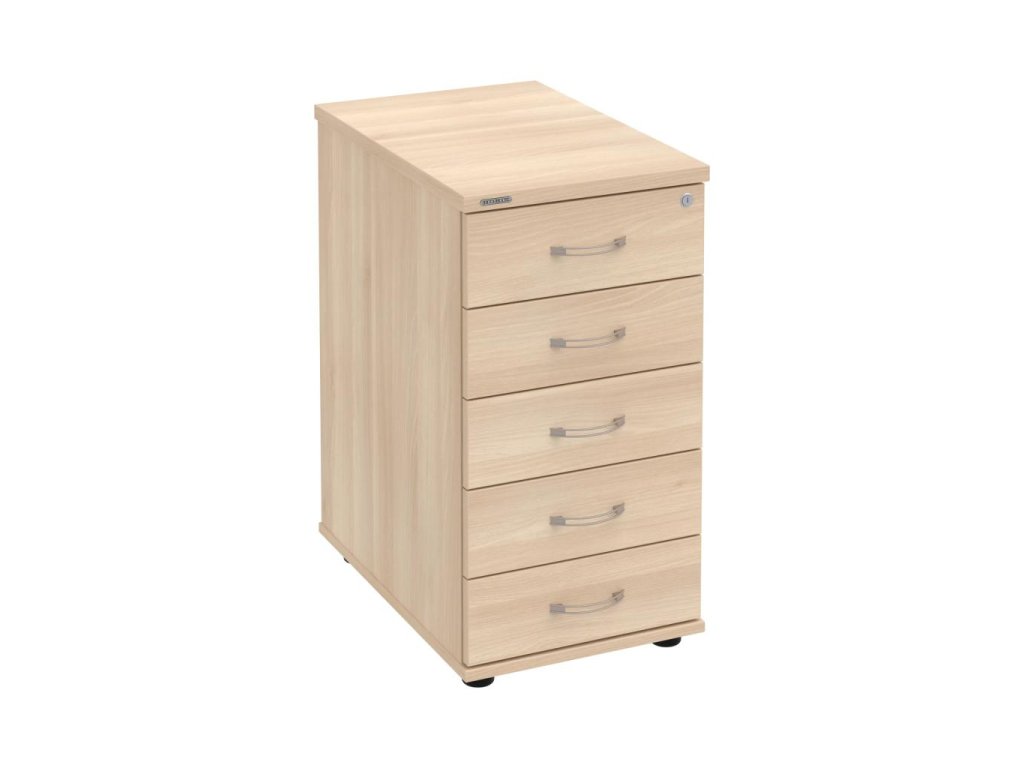 Kontajnery - všetko uložené a vždy poruke. Kontajnery sa väčšinou umiestňujú pod stoly. Mobilné modely sú vybavené kolieskami, je možné ich premiestniť podľa potreby. Základným materiálom korpusov je kvalitná laminovaná drevotriesková doska hrúbky 18 mm. Pre dlhšiu životnosť je na horný diel korpusu použitá doska, ktorej hrúbka je 25 mm. Korpusy a čelá zásuviek sú chránené proti poškodeniu hranou ABS 2 mm. Kontajnery sú vybavené zámkom s centrálnym zamykaním. Vďaka integrovanému systému STOP-CONTROL s centrálnym zámkom u väčšiny kontajnerov sa nemusíte báť prevrhnutiu kontajnera alebo prípadného privretia ruky. Systém zaručí, že pri otvorení jednej zásuvky sa ostatné zásuvky automaticky zablokujú. Zásuvky sú z plastu, ktorý je ľahko umývateľný a vhodný pre jednoduchú údržbu. Praktickou súčasťou vrchnej zásuvky je prehľadný organizér a priestorové deliace priečky. Vaše ceruzky, sponky a ďalšie kancelárske potreby budú vždy na poriadku. Organizér a deliace priečky sú súčasťou každého kontajnera. Na kontajnery Hobis sa vzťahuje päťročná záruka.