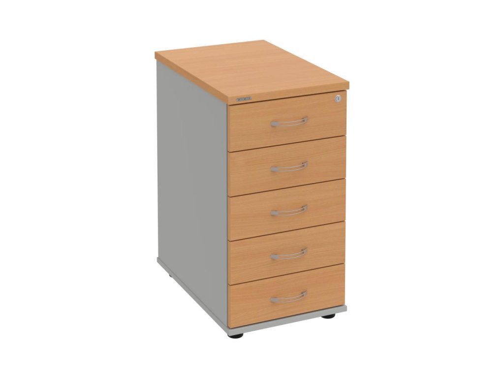 Kontajnery - všetko uložené a vždy poruke. Kontajnery sa väčšinou umiestňujú pod stoly. Mobilné modely sú vybavené kolieskami, je možné ich premiestniť podľa potreby. Základným materiálom korpusov je kvalitná laminovaná drevotriesková doska hrúbky 18 mm. Pre dlhšiu životnosť je na horný diel korpusu použitá doska, ktorej hrúbka je 25 mm. Korpusy a čelá zásuviek sú chránené proti poškodeniu hranou ABS 2 mm. Kontajnery sú vybavené zámkom s centrálnym zamykaním. Vďaka integrovanému systému STOP-CONTROL s centrálnym zámkom u väčšiny kontajnerov sa nemusíte báť prevrhnutiu kontajnera alebo prípadného privretia ruky. Systém zaručí, že pri otvorení jednej zásuvky sa ostatné zásuvky automaticky zablokujú. Zásuvky sú z plastu, ktorý je ľahko umývateľný a vhodný pre jednoduchú údržbu. Praktickou súčasťou vrchnej zásuvky je prehľadný organizér a priestorové deliace priečky. Vaše ceruzky, sponky a ďalšie kancelárske potreby budú vždy na poriadku. Organizér a deliace priečky sú súčasťou každého kontajnera. Na kontajnery Hobis sa vzťahuje päťročná záruka.