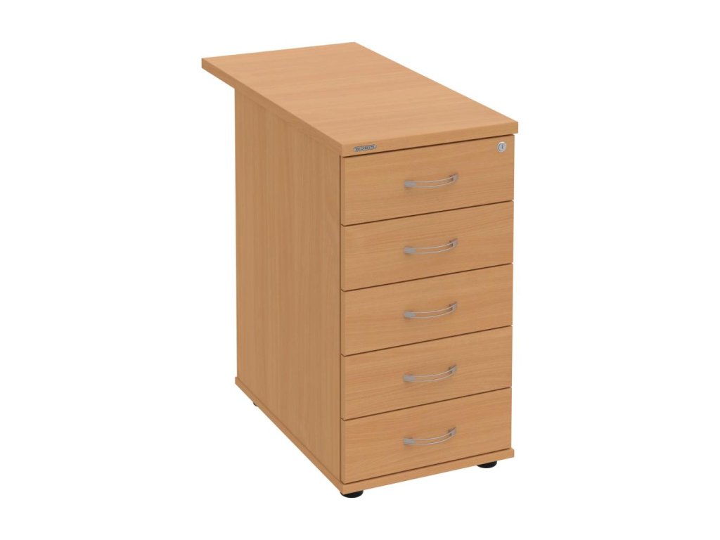 Kontajnery - všetko uložené a vždy poruke. Kontajnery sa väčšinou umiestňujú pod stoly. Mobilné modely sú vybavené kolieskami, je možné ich premiestniť podľa potreby. Základným materiálom korpusov je kvalitná laminovaná drevotriesková doska hrúbky 18 mm. Pre dlhšiu životnosť je na horný diel korpusu použitá doska, ktorej hrúbka je 25 mm. Korpusy a čelá zásuviek sú chránené proti poškodeniu hranou ABS 2 mm. Horná doska ma hĺbku 80 cm. Kontajnery sú vybavené zámkom s centrálnym zamykaním. Vďaka integrovanému systému STOP-CONTROL s centrálnym zámkom u väčšiny kontajnerov sa nemusíte báť prevrhnutiu kontajnera alebo prípadného privretia ruky. Systém zaručí, že pri otvorení jednej zásuvky sa ostatné zásuvky automaticky zablokujú. Zásuvky sú z plastu, ktorý je ľahko umývateľný a vhodný pre jednoduchú údržbu. Praktickou súčasťou vrchnej zásuvky je prehľadný organizér a priestorové deliace priečky. Vaše ceruzky, sponky a ďalšie kancelárske potreby budú vždy na poriadku. Organizér a deliace priečky sú súčasťou každého kontajnera. Na kontajnery Hobis sa vzťahuje päťročná záruka.