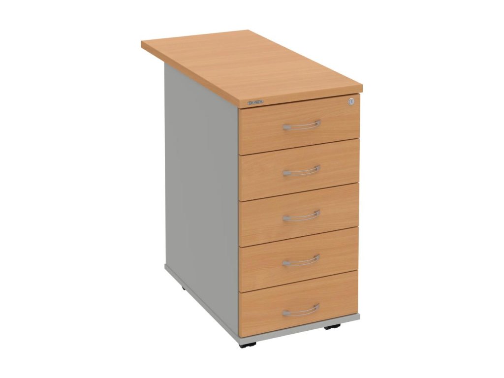 Kontajnery - všetko uložené a vždy poruke. Kontajnery sa väčšinou umiestňujú pod stoly. Mobilné modely sú vybavené kolieskami, je možné ich premiestniť podľa potreby. Základným materiálom korpusov je kvalitná laminovaná drevotriesková doska hrúbky 18 mm. Pre dlhšiu životnosť je na horný diel korpusu použitá doska, ktorej hrúbka je 25 mm. Korpusy a čelá zásuviek sú chránené proti poškodeniu hranou ABS 2 mm. Horná doska ma hĺbku 80 cm. Kontajnery sú vybavené zámkom s centrálnym zamykaním. Vďaka integrovanému systému STOP-CONTROL s centrálnym zámkom u väčšiny kontajnerov sa nemusíte báť prevrhnutiu kontajnera alebo prípadného privretia ruky. Systém zaručí, že pri otvorení jednej zásuvky sa ostatné zásuvky automaticky zablokujú. Zásuvky sú z plastu, ktorý je ľahko umývateľný a vhodný pre jednoduchú údržbu. Praktickou súčasťou vrchnej zásuvky je prehľadný organizér a priestorové deliace priečky. Vaše ceruzky, sponky a ďalšie kancelárske potreby budú vždy na poriadku. Organizér a deliace priečky sú súčasťou každého kontajnera. Na kontajnery Hobis sa vzťahuje päťročná záruka.