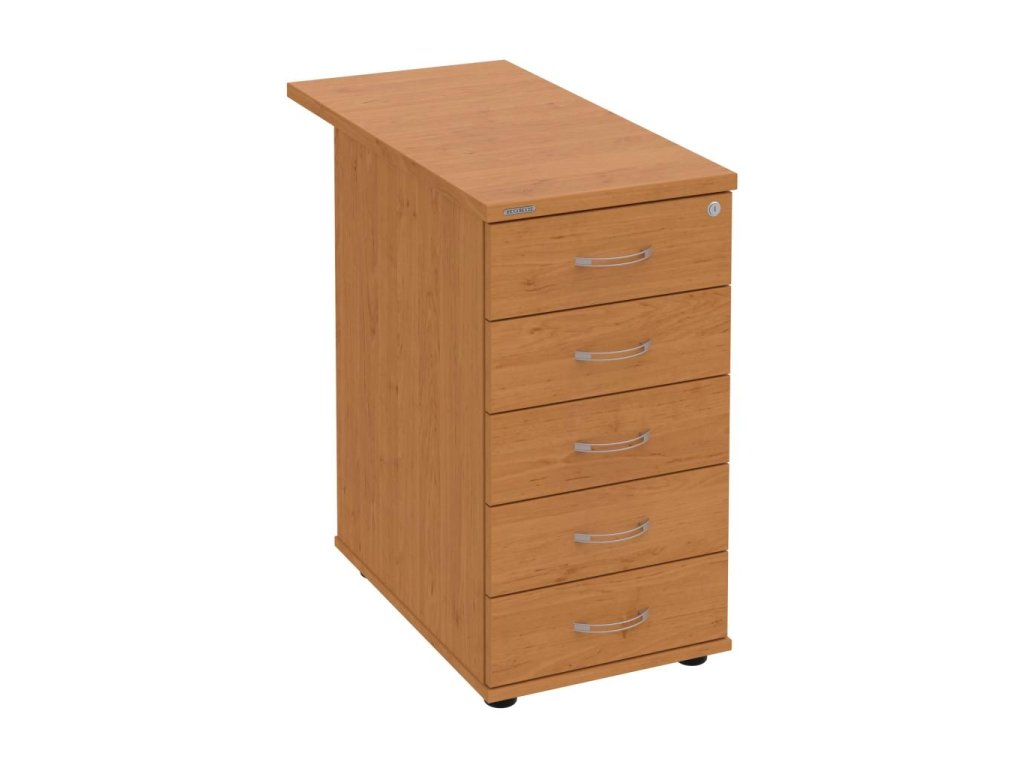 Kontajnery - všetko uložené a vždy poruke. Kontajnery sa väčšinou umiestňujú pod stoly. Mobilné modely sú vybavené kolieskami, je možné ich premiestniť podľa potreby. Základným materiálom korpusov je kvalitná laminovaná drevotriesková doska hrúbky 18 mm. Pre dlhšiu životnosť je na horný diel korpusu použitá doska, ktorej hrúbka je 25 mm. Korpusy a čelá zásuviek sú chránené proti poškodeniu hranou ABS 2 mm. Horná doska ma hĺbku 80 cm. Kontajnery sú vybavené zámkom s centrálnym zamykaním. Vďaka integrovanému systému STOP-CONTROL s centrálnym zámkom u väčšiny kontajnerov sa nemusíte báť prevrhnutiu kontajnera alebo prípadného privretia ruky. Systém zaručí, že pri otvorení jednej zásuvky sa ostatné zásuvky automaticky zablokujú. Zásuvky sú z plastu, ktorý je ľahko umývateľný a vhodný pre jednoduchú údržbu. Praktickou súčasťou vrchnej zásuvky je prehľadný organizér a priestorové deliace priečky. Vaše ceruzky, sponky a ďalšie kancelárske potreby budú vždy na poriadku. Organizér a deliace priečky sú súčasťou každého kontajnera. Na kontajnery Hobis sa vzťahuje päťročná záruka.