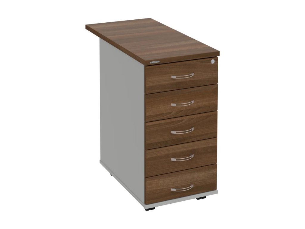 Kontajnery - všetko uložené a vždy poruke. Kontajnery sa väčšinou umiestňujú pod stoly. Mobilné modely sú vybavené kolieskami, je možné ich premiestniť podľa potreby. Základným materiálom korpusov je kvalitná laminovaná drevotriesková doska hrúbky 18 mm. Pre dlhšiu životnosť je na horný diel korpusu použitá doska, ktorej hrúbka je 25 mm. Korpusy a čelá zásuviek sú chránené proti poškodeniu hranou ABS 2 mm. Horná doska ma hĺbku 80 cm. Kontajnery sú vybavené zámkom s centrálnym zamykaním. Vďaka integrovanému systému STOP-CONTROL s centrálnym zámkom u väčšiny kontajnerov sa nemusíte báť prevrhnutiu kontajnera alebo prípadného privretia ruky. Systém zaručí, že pri otvorení jednej zásuvky sa ostatné zásuvky automaticky zablokujú. Zásuvky sú z plastu, ktorý je ľahko umývateľný a vhodný pre jednoduchú údržbu. Praktickou súčasťou vrchnej zásuvky je prehľadný organizér a priestorové deliace priečky. Vaše ceruzky, sponky a ďalšie kancelárske potreby budú vždy na poriadku. Organizér a deliace priečky sú súčasťou každého kontajnera. Na kontajnery Hobis sa vzťahuje päťročná záruka.