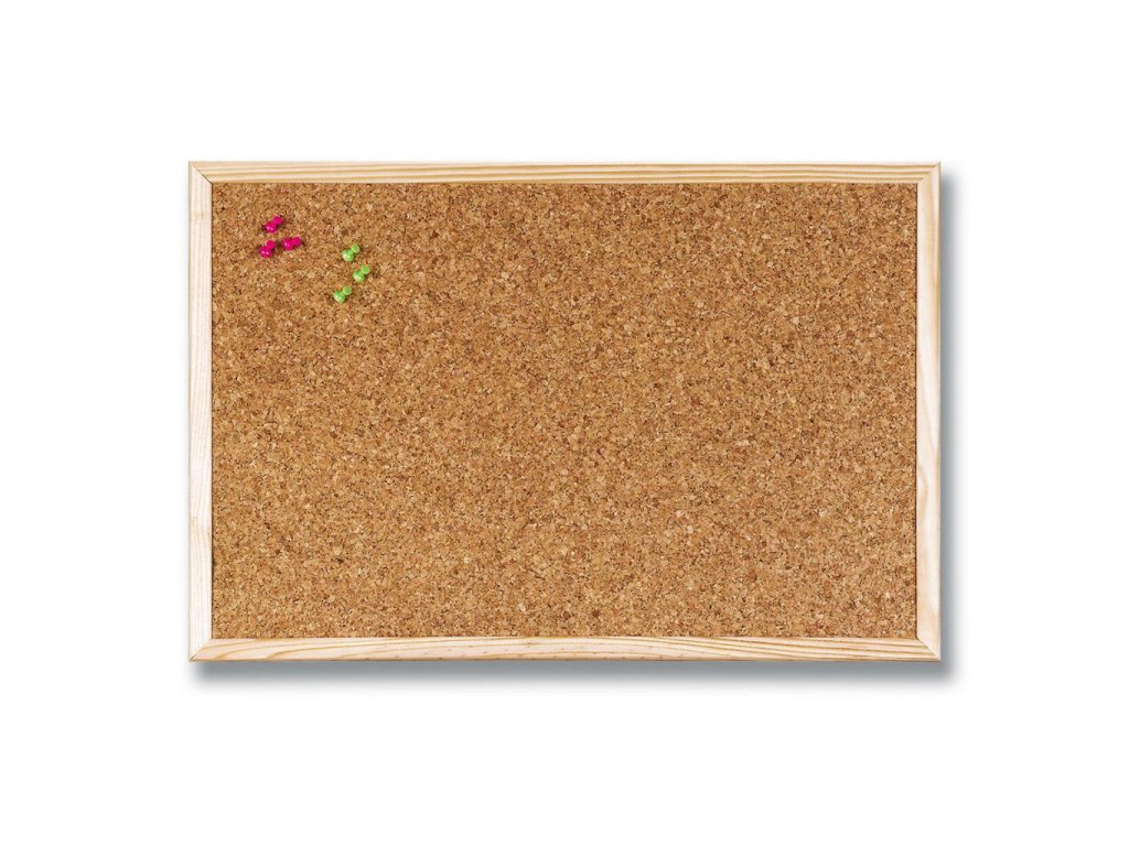 Nástenka v svetlom drevenom ráme v korkovej úprave. Súčasťou balenia je sada montážnych úchytov.