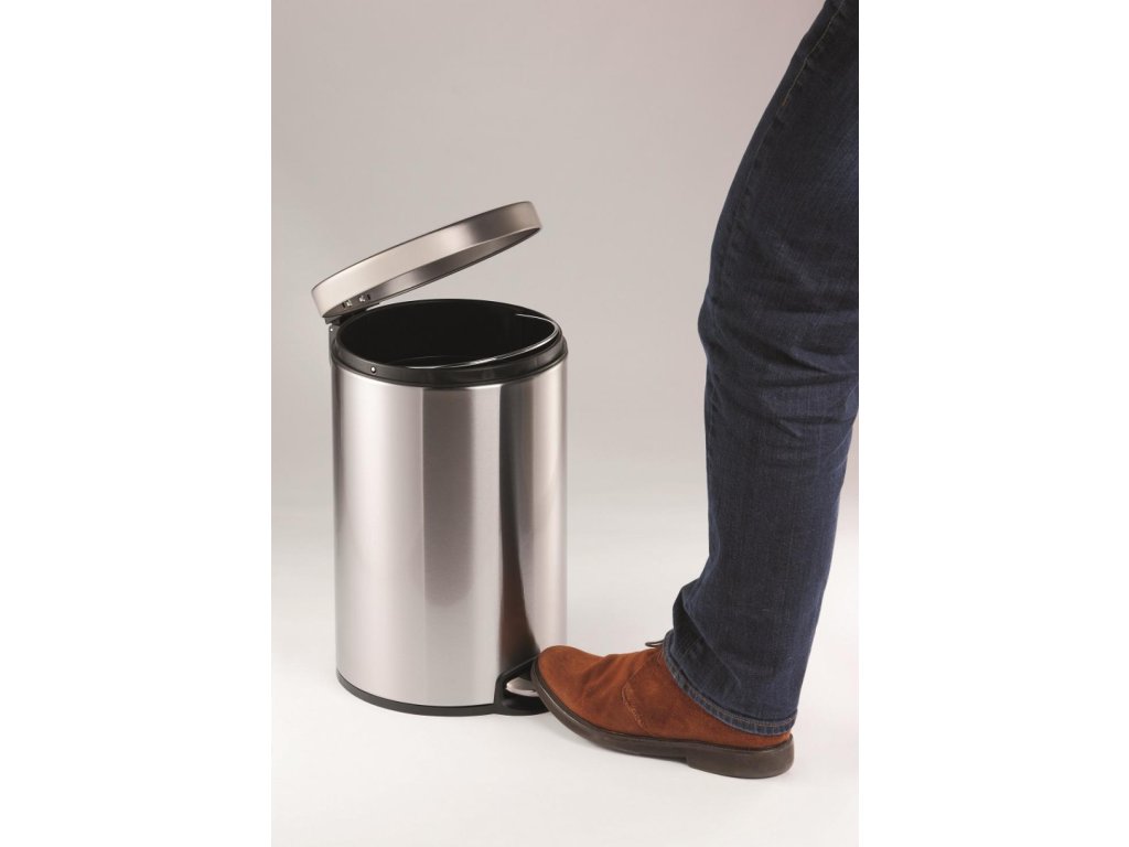 na vrecko na odpadky. Spodná časť z plastu proti korózii a pre lepšiu stabilitu. Veko na pedál sa zatvára ticho. Úprava z nerezovej ocele je potiahnutá vrstvou proti neželaným odtlačkom prstov. Objem 12 l, rozmery 310 x 400 mm.