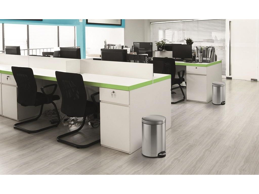Odpadkový kôš na papier z nerezovej ocele vybavený vyberateľnou vnútornou nádobou z plastu a plastovou objímkou