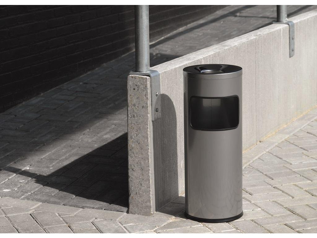 Smetný kôš na papier a popolník v jednom. Objem koša 17 l, výška 630 mm, priemer 250 mm. Objem popolníka 2 l, výška 60 mm, priemer 240 mm.