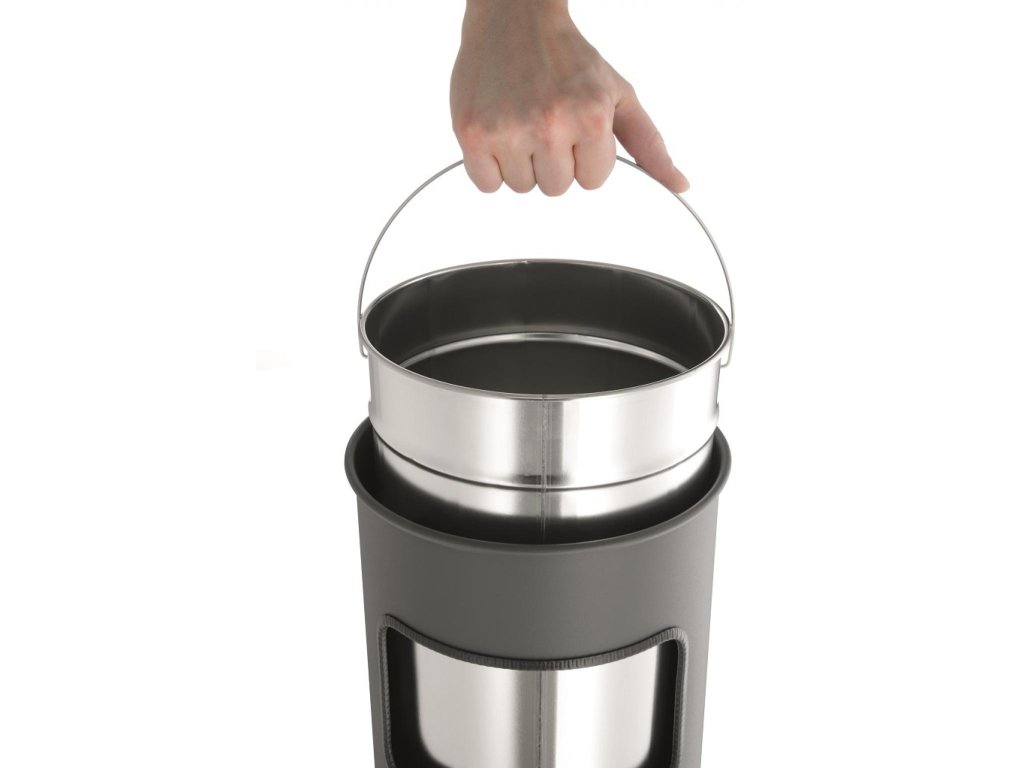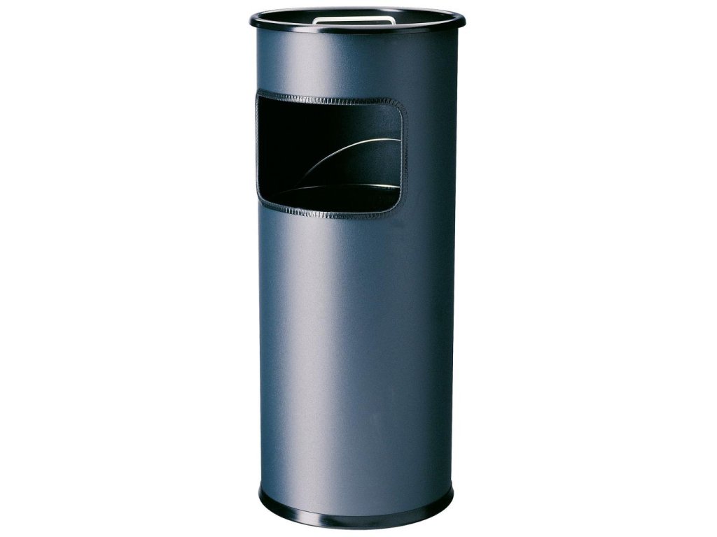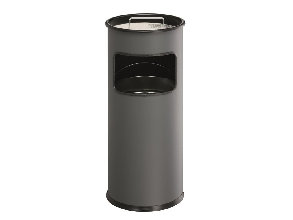 Kovový kôš na odpadky s vyberateľným zinkovým vnútrom a vyberateľným popolníkom naplneným pieskom /1,5 kg/ . Vhodný na použitie v interiéry aj v exteriéry. Objem koša 17 l, výška 620 mm, priemer 260 mm. Objem popolníka 2 l. Farba antracitová.