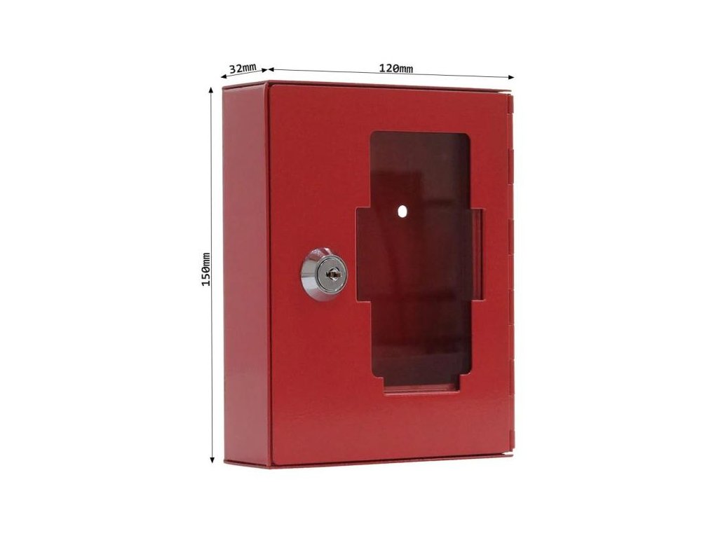 Kovová skrinka na núdzový kľúč bez kladivka, v.15 x š.12 x h.3,2 cm, červená