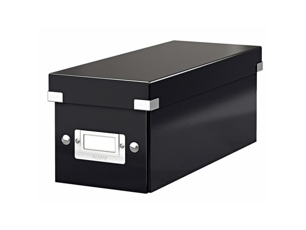Multifunkčná atraktívna archivačná krabica vo výrazných farbách WOW vhodná na použitie v kancelárii i v domácnosti. CD alebo DVD v klasických plastových obaloch. Pevné a stabilné prevedenie. Materiál silný drevnatý kartón potiahnutý laminom. Úchyty, miesto na štítok, vystužené rohy krabice a spojovacie cvoky vyrobené z kovu. Krabica dodávaná rozložená. Veľmi skladná pri nepoužívaní. Rozmery 143 × 352 × 136 mm. Väčšie balenie 6 ks. Farba čierna.