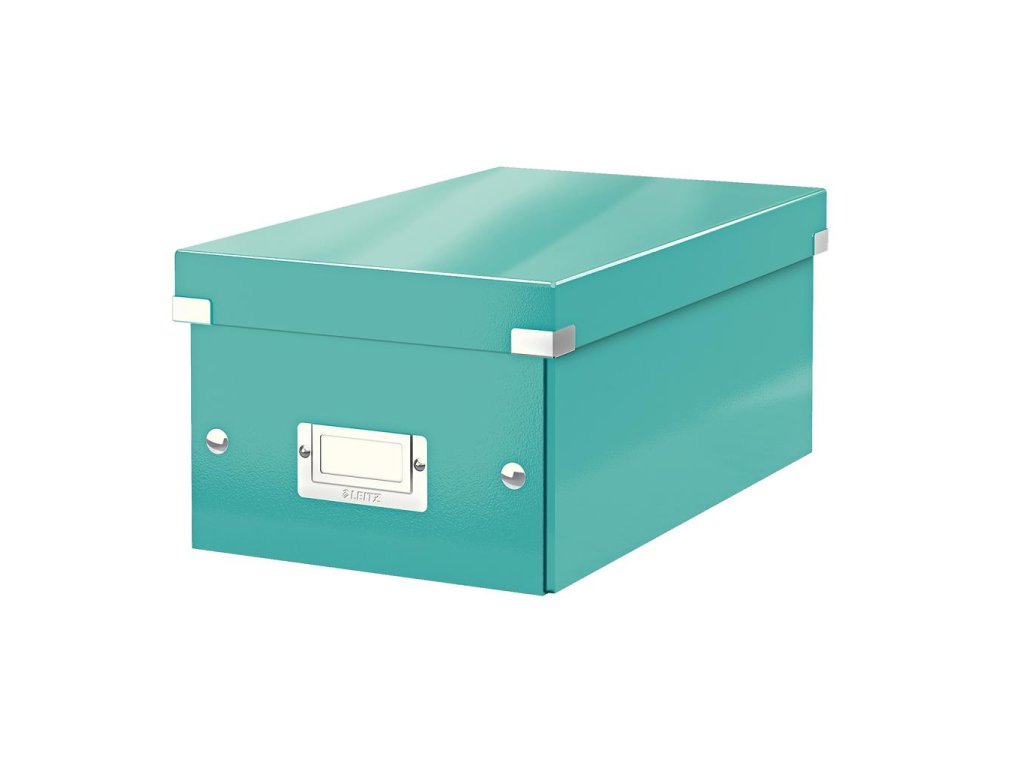 Atraktívna archivačná krabica vhodná na použitie v kancelárii i v domácnosti. Ideálna ukladanie DVD. Pevné a stabilné prevedenie. Materiál silný drevnatý kartón potiahnutý laminom. Úchyty, rámček na štítok, vystužené rohy krabice a spojovacie cvoky vyrobené z kovu. Krabica je dodávaná rozložená, jednotlivo zabalená. Veľmi skladná pri nepoužívaní. Rozmery 206×147×352 mm. Farba ľadovo modrá
