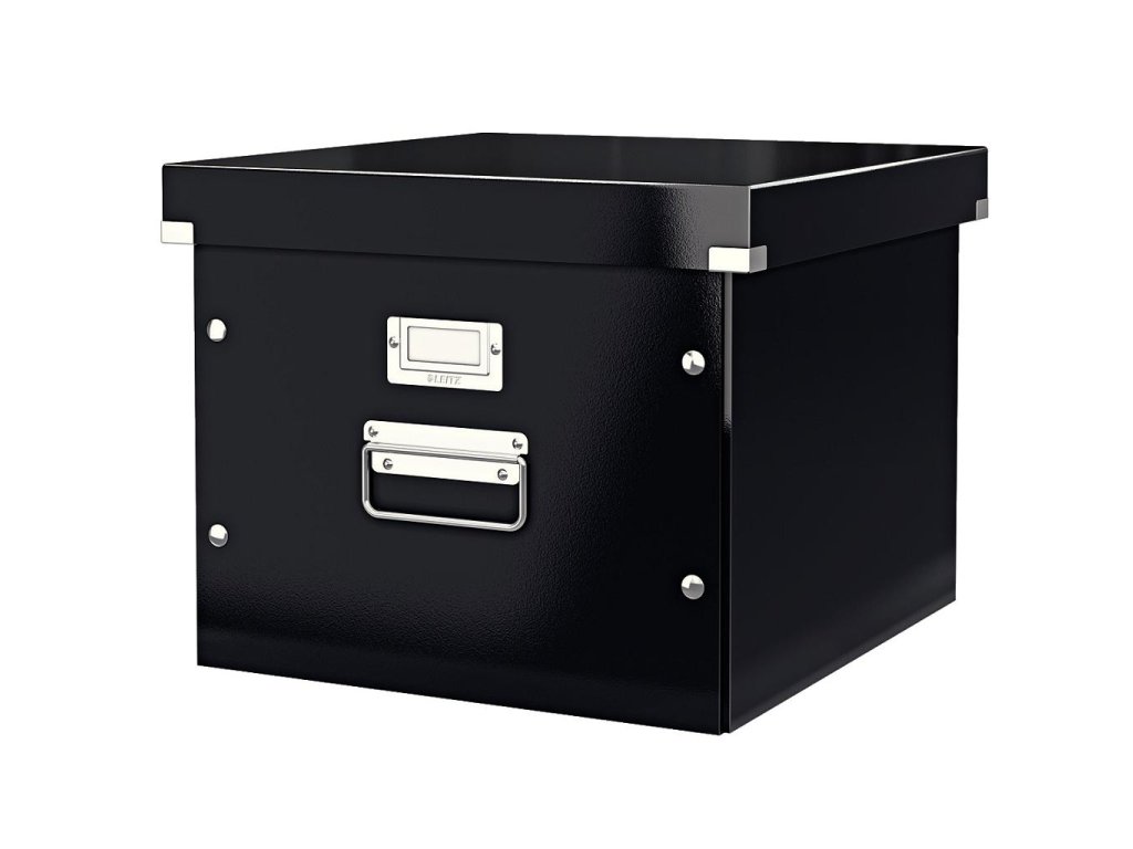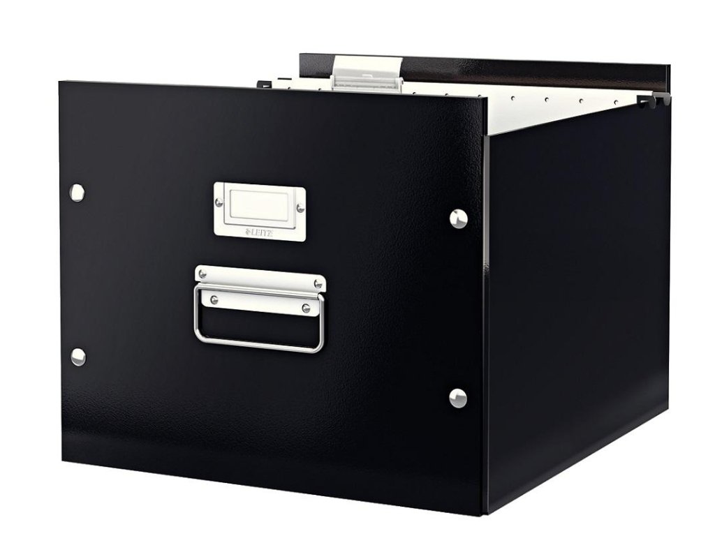 Atraktívna archivačná krabica vhodná na použitie v kancelárii i v domácnosti. Ideálna na ukladanie závesných obalov. Pevné a stabilné prevedenie. Materiál silný drevnatý kartón potiahnutý laminom. Úchyty, rámček na štítok, vystužené rohy krabice a spojovacie cvoky vyrobené z kovu. Škatuľa je dodávaná rozložená, jednotlivo zabalená. Veľmi skladná pri nepoužívaní. Farba čierna. Väčšie balenie 6 ks.