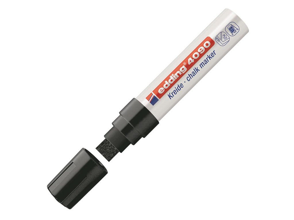 Popisovač s kriedovým atramentom neutrálnej vône na báze vody. Vhodný na sklo a takmer všetky druhy nepórovitých povrchov. Atrament rozpustný vo vode, stierateľný vlhkou handričkou. Hrot zrezaný, šírka stopy 4---15 mm. Väčšie balenie 5 ks.