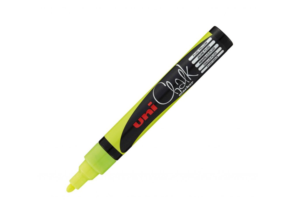 Kriedové popisovače s možnosťou použitia pre priemysel, dekoráciu, informačné tabule a hobby. Na čistých a odmastených neporéznych povrchoch text po zaschnutí odoláva vode a UV, ale je stierateľný vlhkou handričkou. Vhodné na okná, zrkadlá, kovové a plastové povrchy. Hrot guľatý, šírka stopy 1,8 - 2,5 mm. Farba neónovožltá.