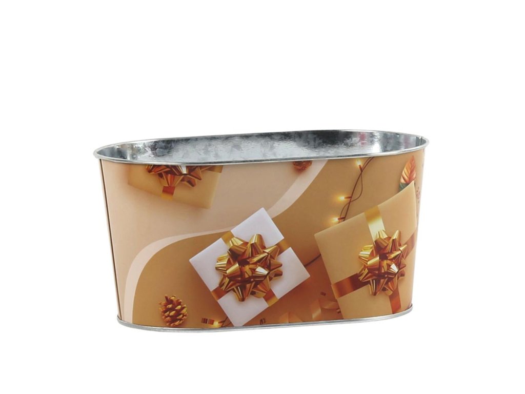 Kvetináč plechový 225x110 mm oválny, darčeky, biela, zlatá