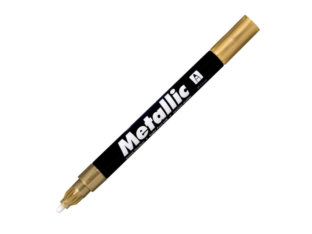 Lakový popisovač na neporézne povrchy. Svetlostály atrament po zaschnutí odolá vode, poveternostným vplyvom aj oderu. Hrot okrúhly, šírka stopy 1,5 mm. Väčšie balenie 10 ks v jednej farbe. Farba zlatá.