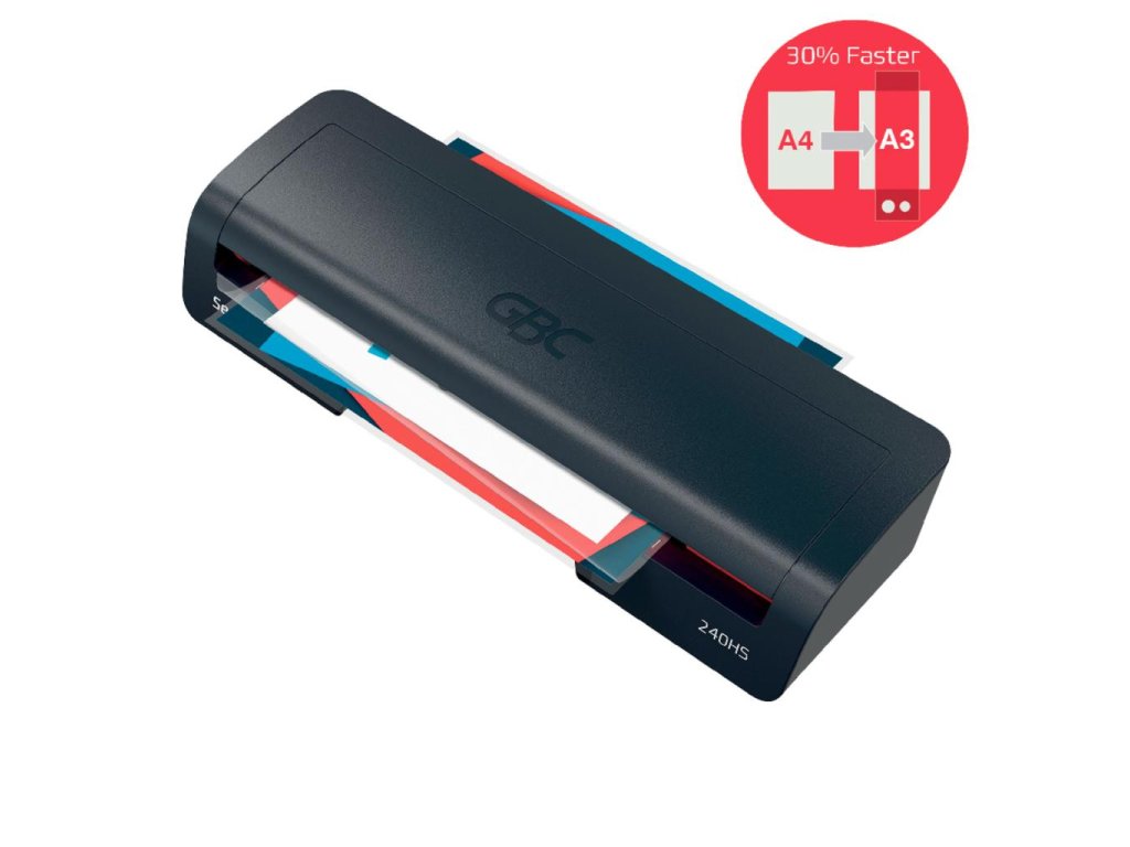• vysokorýchlostné laminátory GBC skracujú čas laminovania o 30 % pri použití laminovacích vreciek GBC na rýchle laminovanie