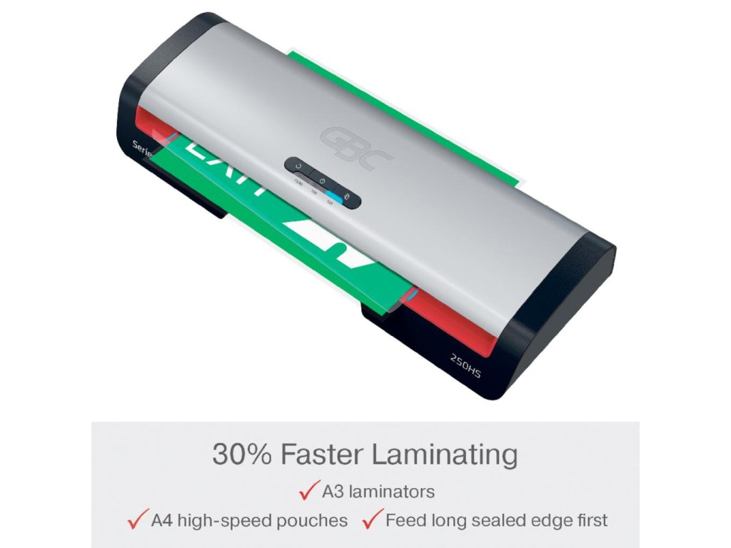 • s časom zahrievania len jednu minútu laminuje 75-mikrónový list A4 už za 36 sekúnd