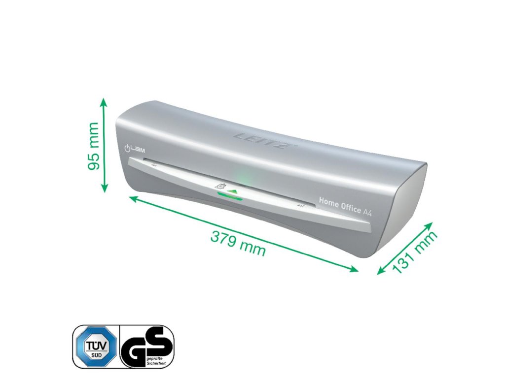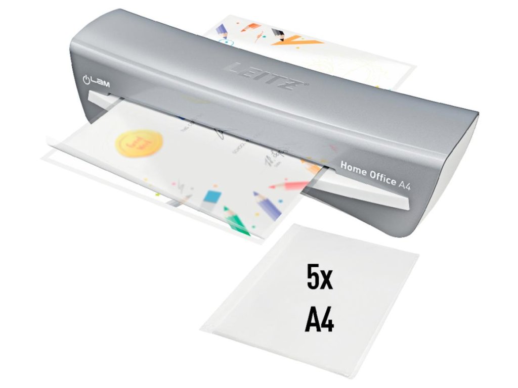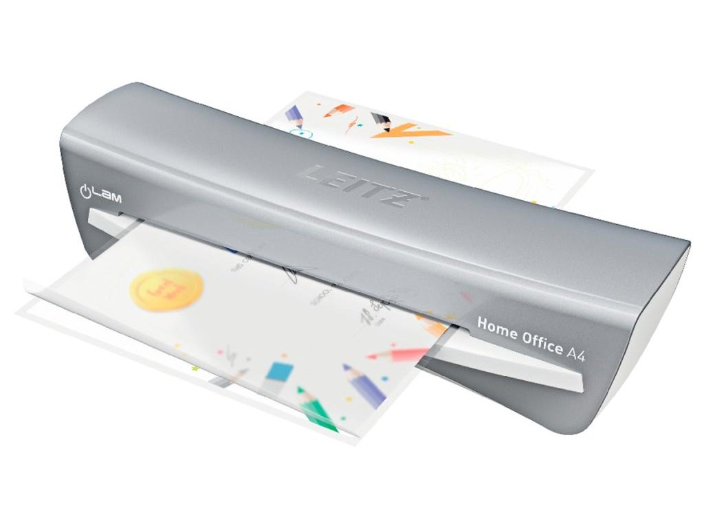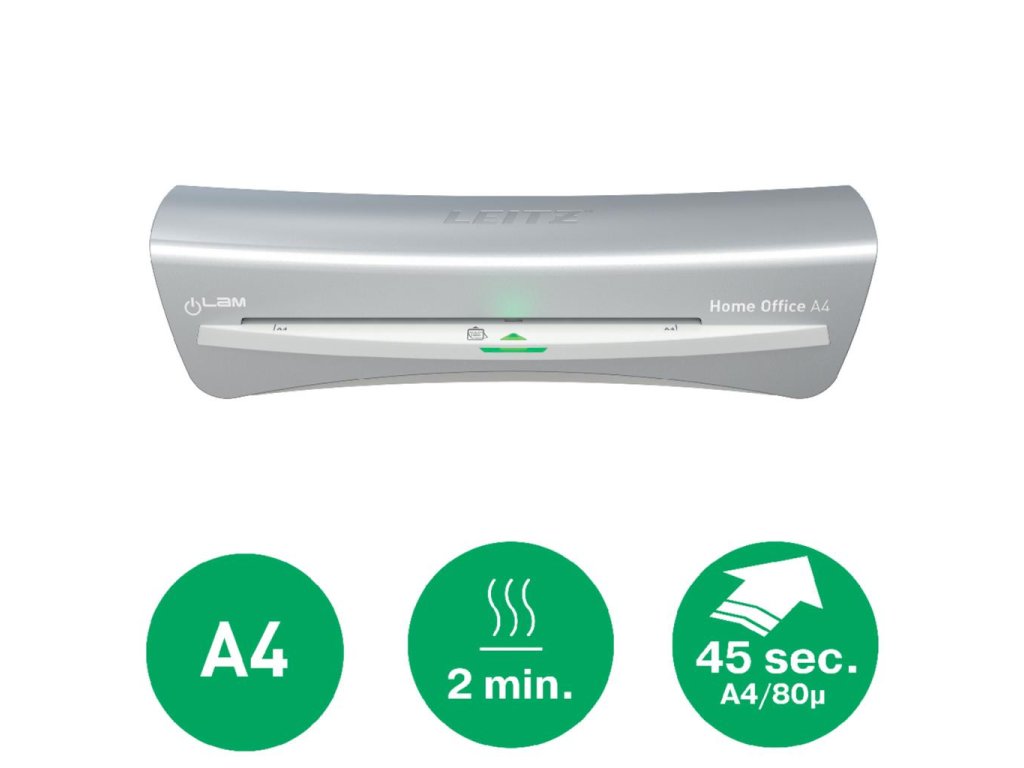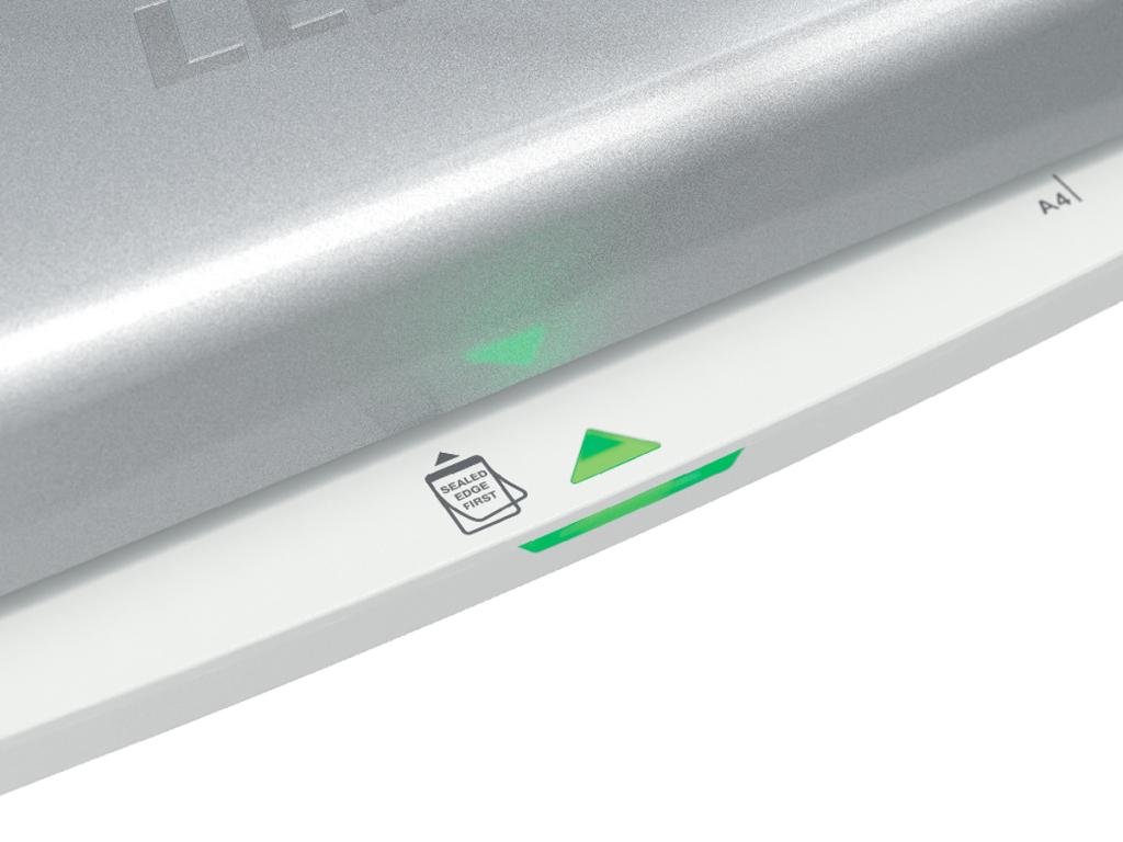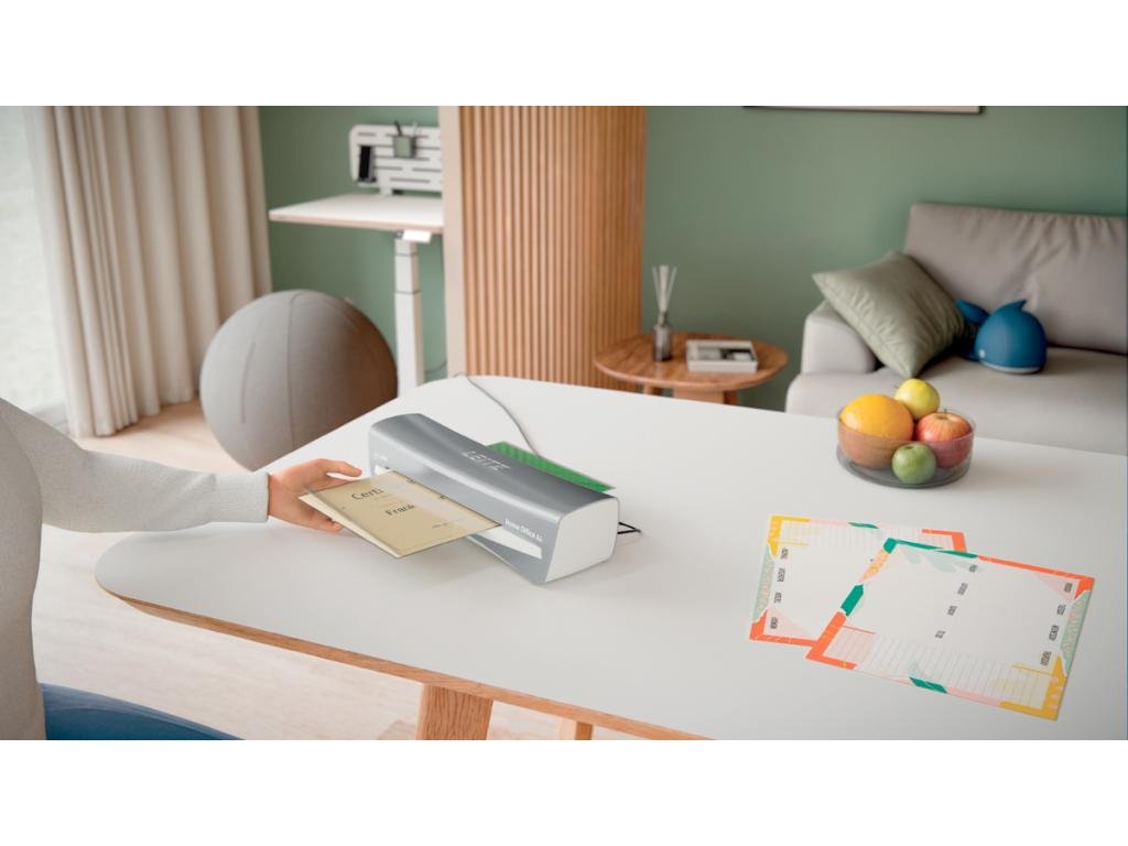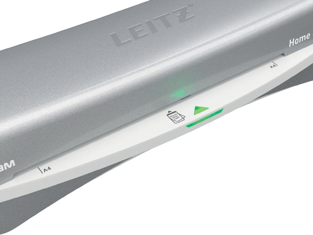 Štýlový a kompaktný laminovací prístroj Leitz iLAM Home Office spája moderný dizajn s funkčnosťou. Tento pre obsluhu prívetivý laminátor vo formáte A4 ponúka rýchle 2-minútové zahriatie a dokument A4 v 80-mikrónovej kapse na laminovanie zalaminuje už za obyčajných 45 sekúnd. Kolískový prepínač umožňuje výber z troch úrovní hrúbky kapsy na všestranné použitie a splnenie všetkých požiadaviek na laminovanie. Hladkú prevádzku zabezpečuje mechanizmus proti zaseknutiu kapsy tak, že bez námahy odstráni akékoľvek zaseknuté alebo zle vložené vrecká na laminovanie. Inovatívna inteligentná stavová LED dióda uľahčuje používanie pomocou intuitívnych svetiel a zvukov: červená dióda znamená zahrievanie, zelená so zvukovým upozornením oznamuje pripravenosť na laminovanie, blikajúca červená dióda znamená automatické vypnutie po 15 minútach nečinnosti. Chráňte svoje dokumenty rýchlo, efektívne a štýlovo. Určené na kapsy od 75 do 125 mikrónov. TUV/GS, CE certifikácia. Strieborná a biela farba.