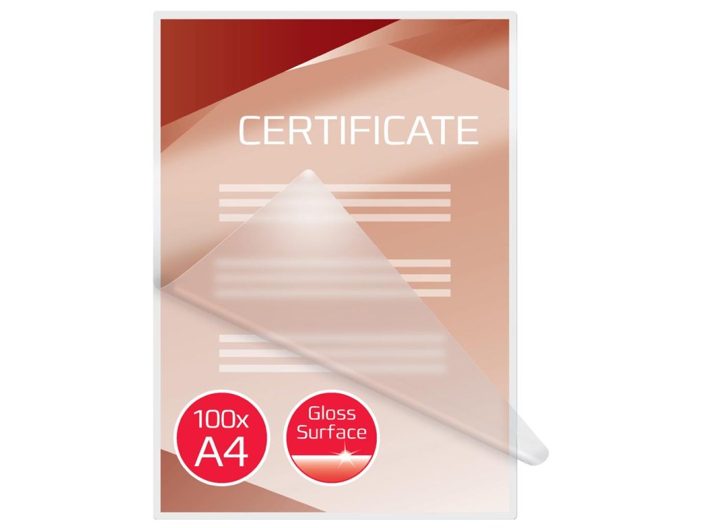 Praktické riešenie pre každodenné použitie chrániace a zdokonaľujúce hodnotné listy prezentácií, referenčných zoznamov, produktových listov, upozornení a pod. Lesklé vyhotovenie, hrúbka 2 × 100 mikrónov. Formát A4. Balenie po 100 kusoch.