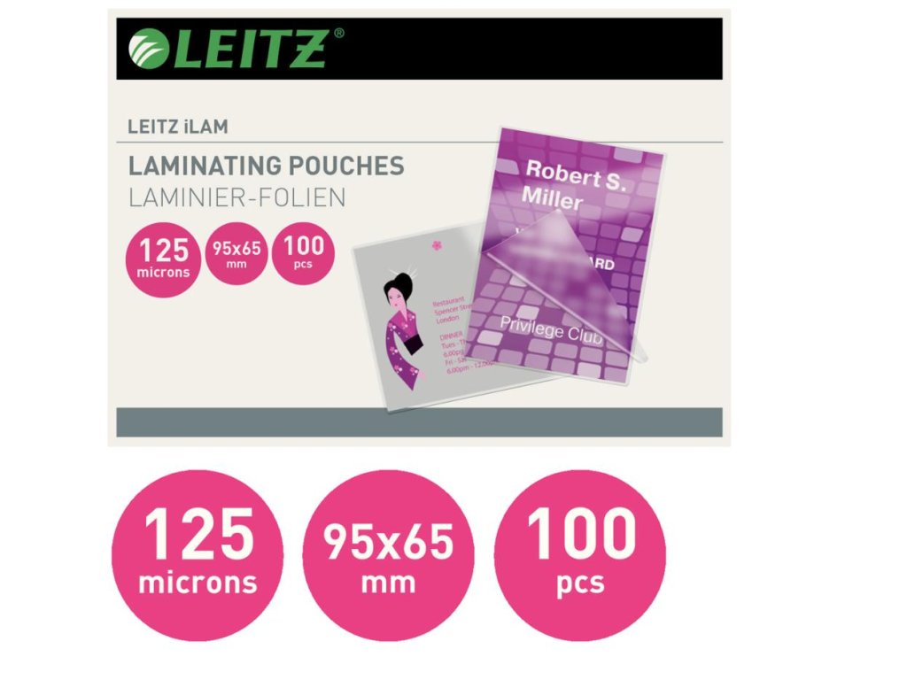 Laminovacie fólie Leitz iLAM 95 x 65 mm, 125 mic, 100 ks