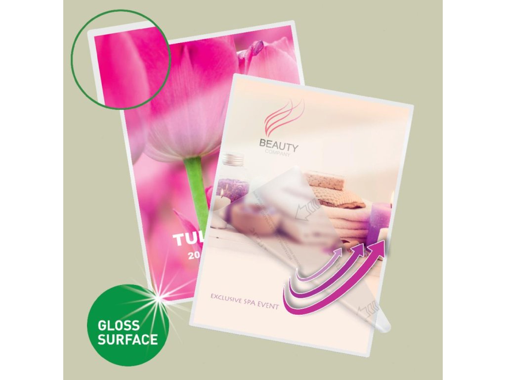 - Dlhodobá ochrana dokumentu pred nečistotou, tekutinou a vlhkosťou. Štandardná tuhosť laminácie.