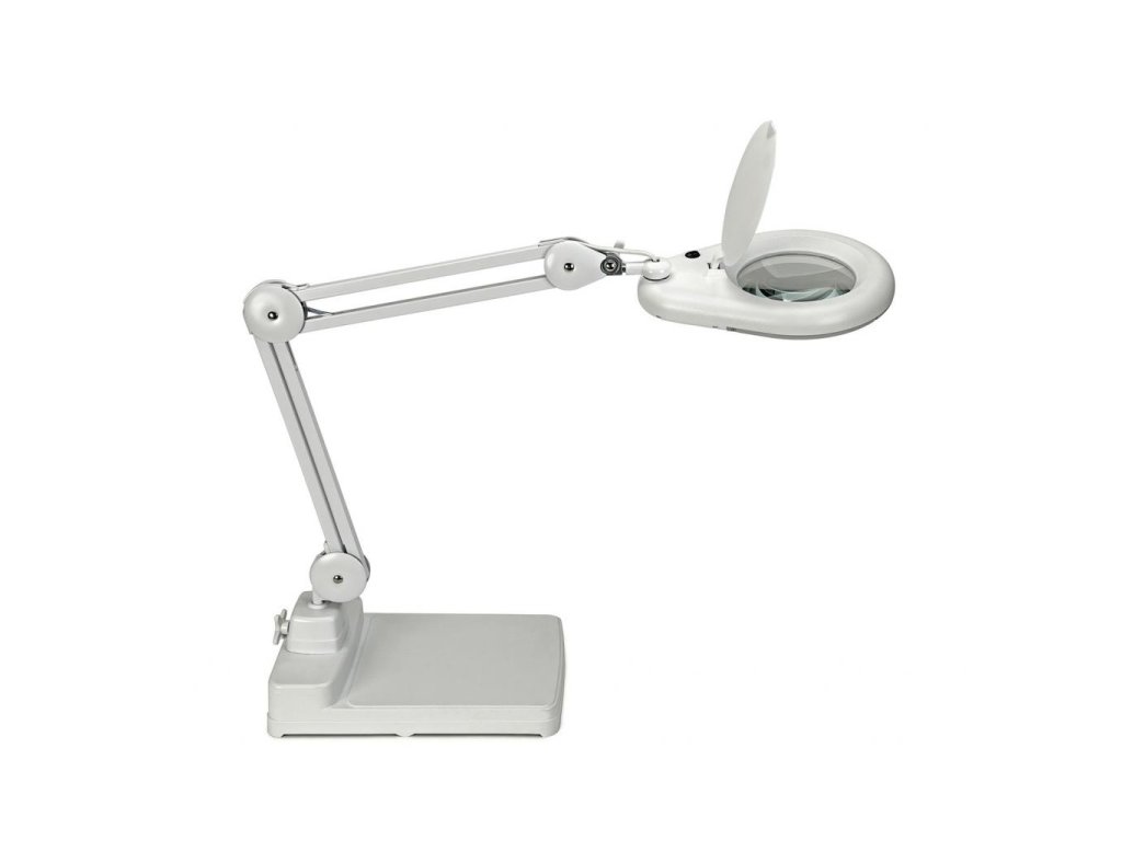Silné a stabilné lampy a lupy v jednom v energeticky úspornej triede „A+“ (spektrá A++ - E) s najmodernejšou LED technológiou, elegantne navrhnutou hlavicou s dlhou životnosťou LED žiaroviek so svietivosťou denného bieleho svetla 6 500 °K a spotrebou energie 8 kWh / 1 000 h. Kruhové umiestnenie vstavaných 56 ks LED žiaroviek bez možnosti ich výmeny umožňuje rovnomerné rozdelenie svetla. Životnosť LED je cca 20 000 hodín. Svietivosť 2 120 lx pri vzdialenosti 35 cm od stola, svetelný tok 660 lúmenov, garancia bez spotreby energie pri vypnutí. Šošovka s ochrannou chlopňou proti prachu a slnečnému žiareniu, 3 dioptrie so 75% zväčšením, zväčšovací priestor 144 cm². Silné kovové ramená sú výkyvné