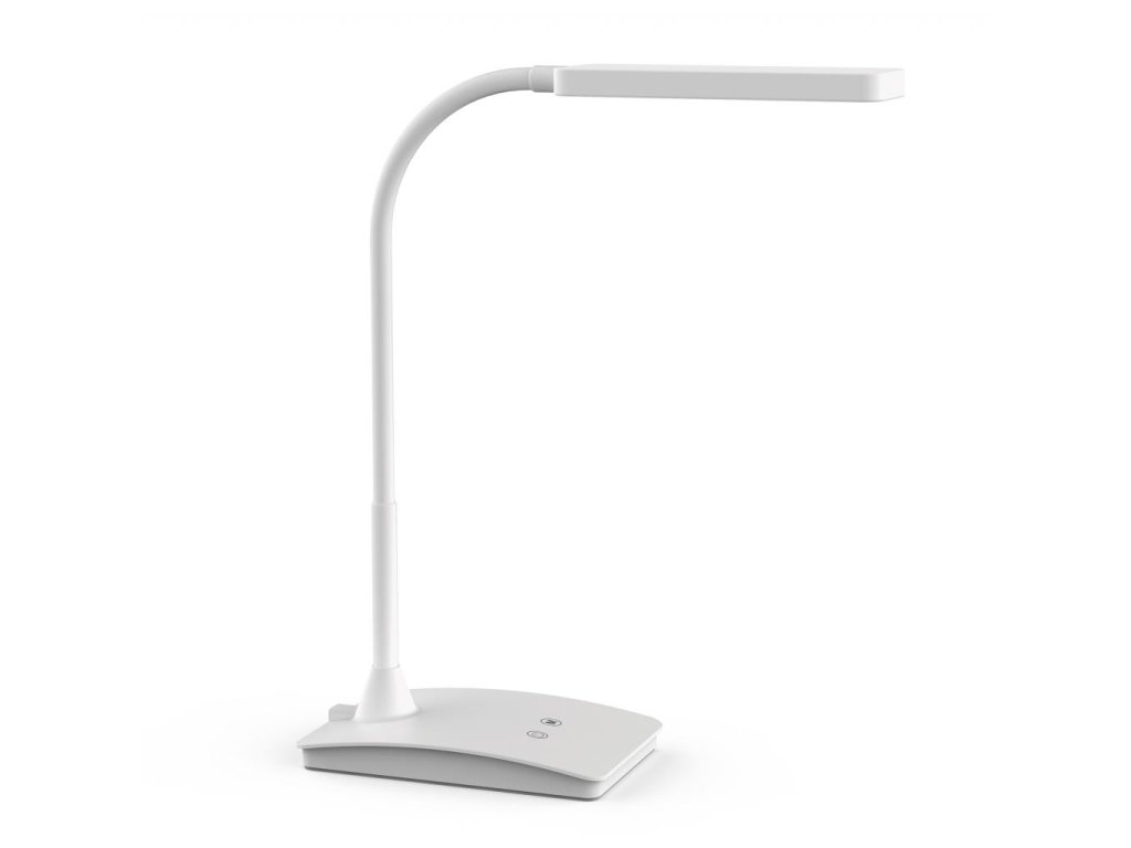 Výkonná kompaktná lampa energeticky úspornej triedy „A+“ (spektrá A++-E) s 24 LED žiarovkami bez možnosti ich výmeny so životnosťou 20 000 hodín, 8 LED s denným bielym svetlom 3 000 °K, 16 LED s 6 500 °K. Teplotu farieb a intenzitu osvetlenia je možné nastaviť v 3 krokoch v závislosti od denného času a osobných potrieb. Svietivosť 1 360 lx pri vzdialenosti 35 cm od stola, svetelný tok 320 lúmenov, extrémne nízka spotreba energie cca 6 kWh / 1 000 h. Stabilné kovové rameno s gumovým povrchom a fl exibilným rozsahom pre nastavenie uhla, sklopná a otočná plastová svetelná hlavica 16 × 6 cm. Výška normálnej pracovnej pozície 36 cm. Pohodlné ovládacie tlačidlá s dotykovou funkciou na plastovej základni rozmerov 16,5 × 10,6 cm so závažím a podložkou proti poškodeniu dosky stola. Dĺžka kábla 1,7 m. Farba biela.