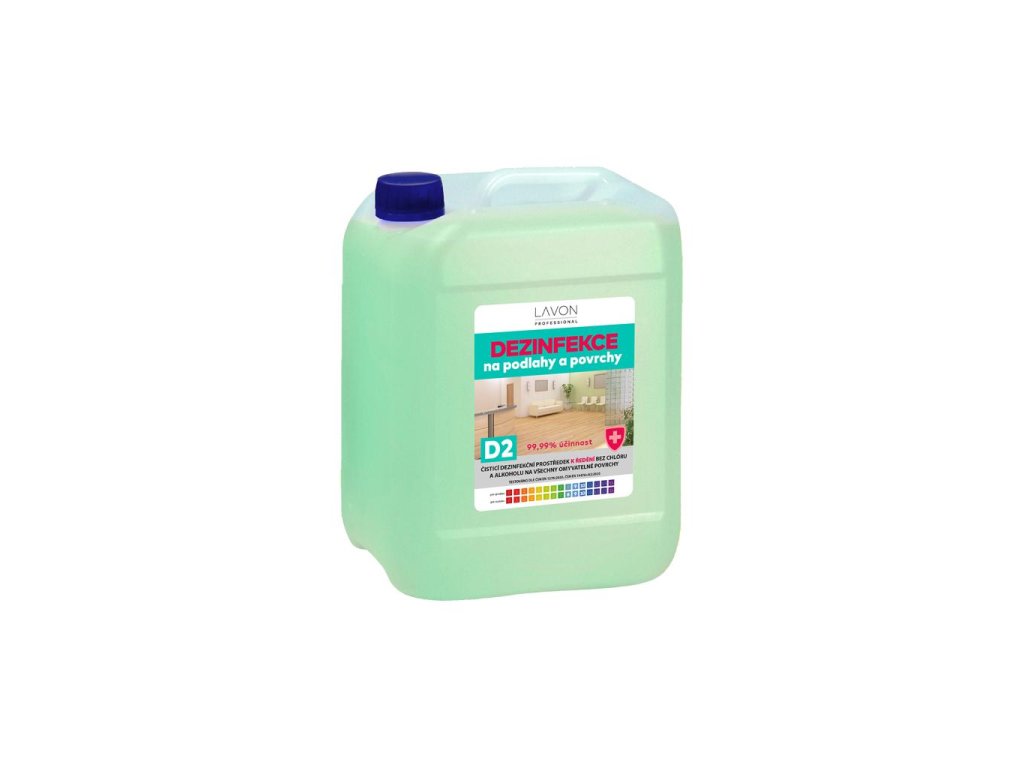 Dezinfekčný prostriedok LAVON na podlahy a povrchy D2 je biocídny čistiaci prípravok s vysokou penivosťou do potravinárstva, priemyslu, domácností a verejných priestorov. Určený na dezinfekciu a čistenie všetkých druhov podláh a nenasiakavých povrchov. Vysoká čistiaca a odmasťovacia účinnosť, vhodný aj na umývanie riadu. Likviduje baktérie a obalené vírusy: OTESTOVANÉ podľa STN EN 1276:2020, STN EN 14476+A2:2020.