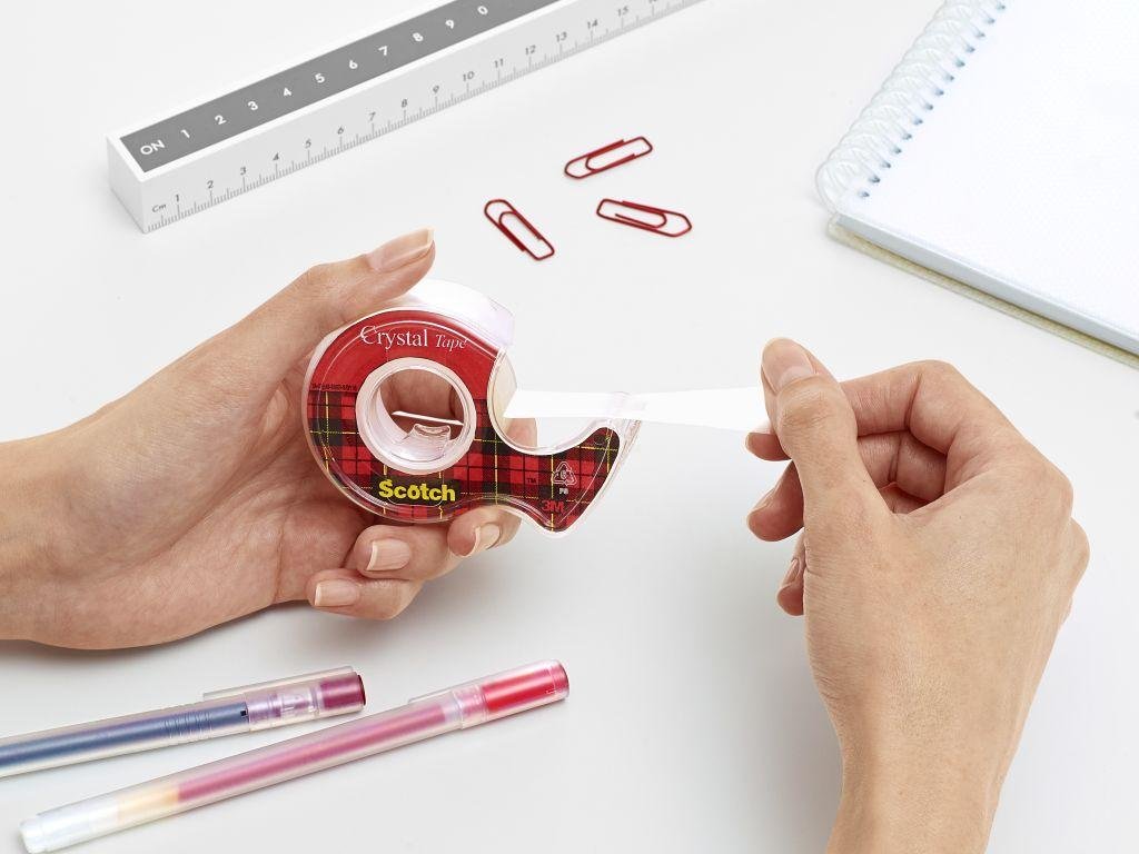 - Kryštalicky číra lepiaca páska Scotch® obsahuje silné lepidlo pre široké spektrum použití vrátane bežného balenia, lepenia a opravovania