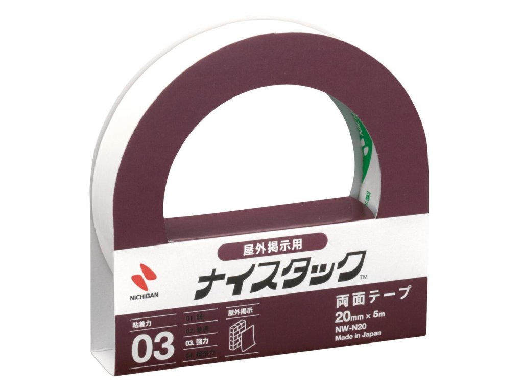 Obojstranne lepiaca páska, vyvinutá japonskou spoločnosťou Nichiban, ktorá ponúka riešenie na každú príležitosť. Inovatívnymi postupmi dosiahla spoločnosť Nichiban už storočnej tradície v oblasti adhezívnych technológií, ktoré pomáhajú v celom spektre priemyselného odvetvia aj v kanceláriách a domácnostiach po celom svete. Obojstranná páska na vonkajšie použitie drží skvele na nerovných povrchoch a stenách a odoláva poveternostným vplyvom. Väčšie balenie 10 ks. Rozmery 20 mm × 5 m. Farba biela.