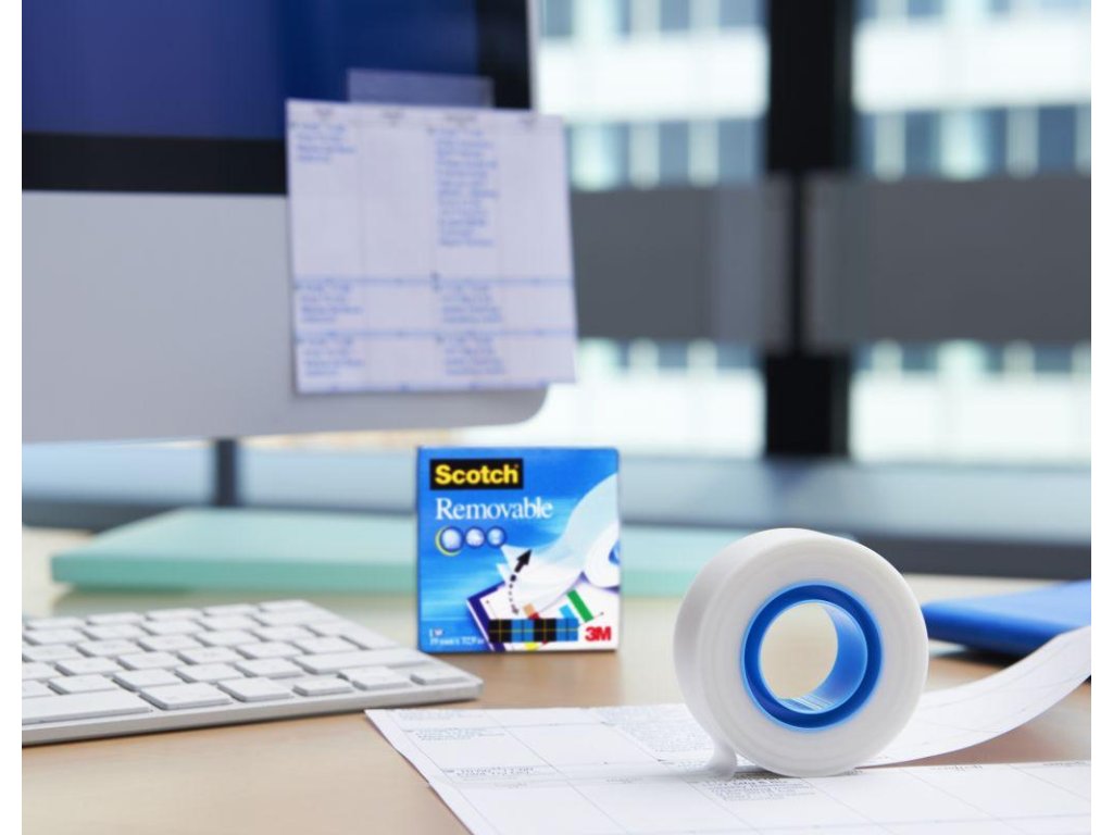 - Scotch® Snímateľná lepiaca páska obsahuje odnímateľné lepidlo 3M, ktoré bezpečne drží papiere na ich mieste.
