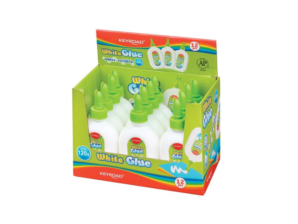 Biele lepidlo ideálne pre všetky druhy výtvarných prác a remesiel, na školské použitie, bezpečné pre deti. Hmotnosť: 120 g. Display 12 ks. Farba: biela.