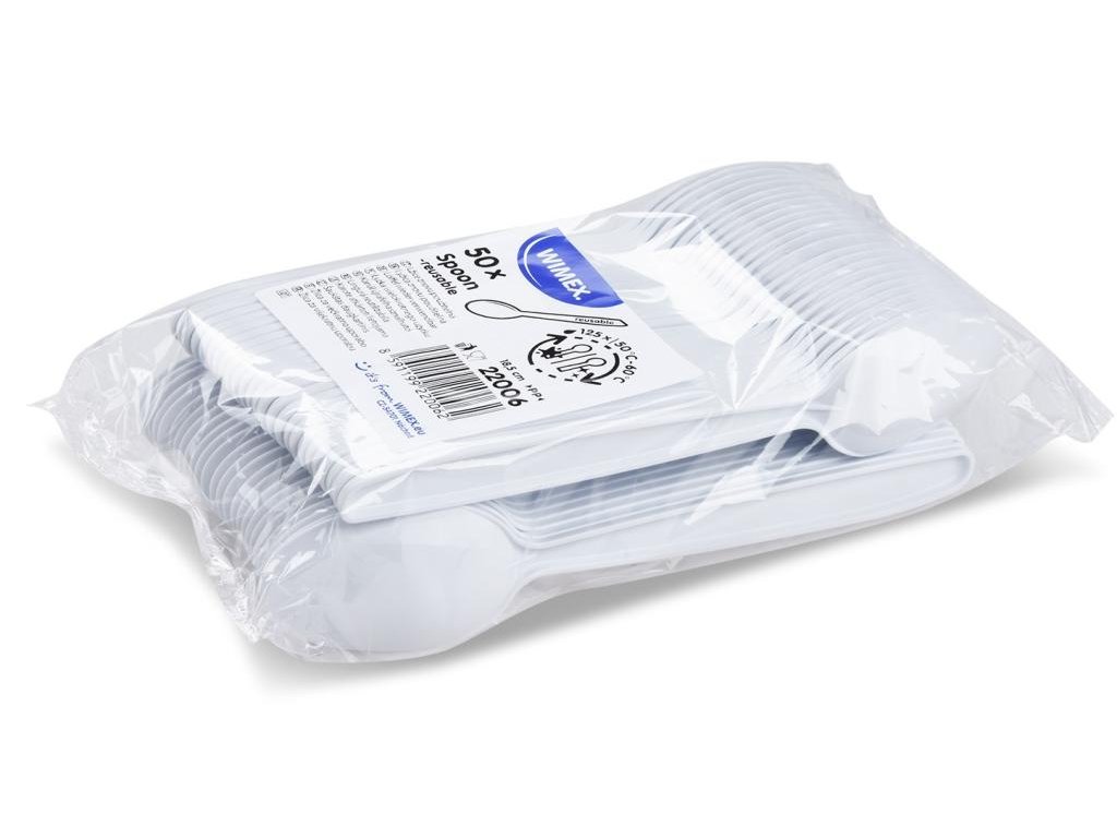 Lyžice plastové znovu použiteľné biele 18,5 cm (50 ks)