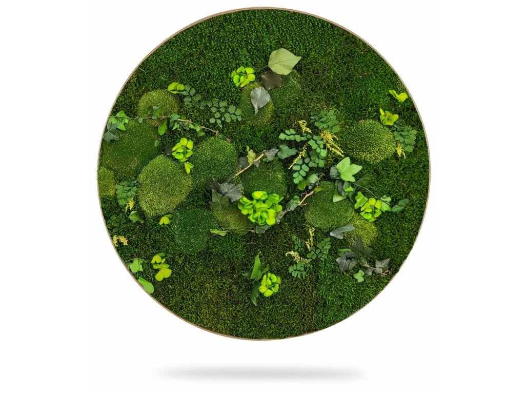 Machový obraz kruh RASTLINY Mesia, priemer 55cm, dubový rám