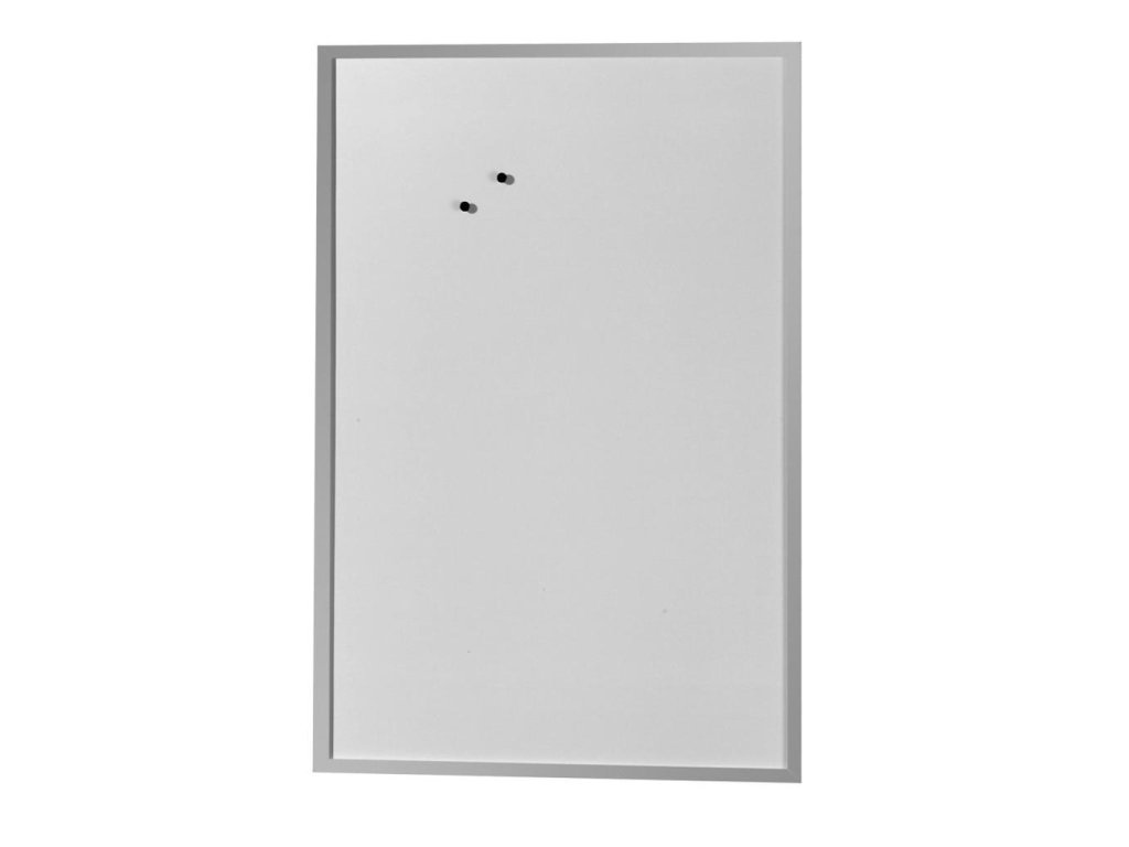 Biela magnetická popisovateľná tabuľa so sivým dreveným rámom. Súčasťou tabule je 1 kus popisovača, 2 kusy magnetov a 2 kusy očiek na zavesenie. Rozmery: 60x80 cm. Úprava: magnetická.