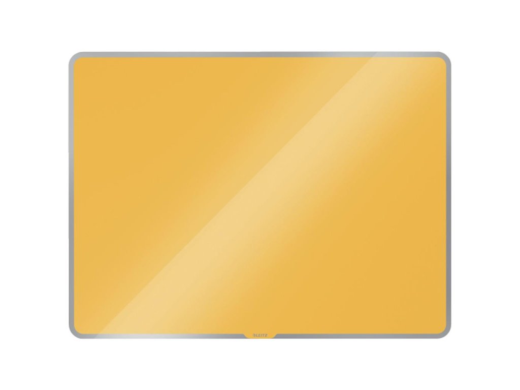 Sklenená magnetická tabuľa na písanie Leitz Cosy je nástroj na písanie poznámok, ktorý možno používať opakovane. Píšete jednoducho pomocou priloženej suchej fixky, potom stačí zotrieť a začať znovu. Povrch je vyrobený z tvrdeného bezpečnostného skla s ultra stierateľnosťou a vysokou odolnosťou proti atramentovým fľakom, zvyškom po fixkách, poškriabaniu a preliačeninám. Vďaka minimalistickému dizajnu bez rámu a príjemným farbám pridáte svojmu pracovnému priestoru štýl a farbu.Jednoduchá montáž vďaka skrytému 4-rohovému montážnemu systému a montážnej súprave (2 skrutky a 2 hmoždinky). Rozmery 60 x 80 cm. Farba teplá žltá. Dodáva sa s handričkou z mikrovlákien na jednoduché čistenie a s čiernym popisovačom na suché stieranie, ktorý má na viečku vstavaný čistiaci kus. Magnetický popisovač drží priložený kdekoľvek na tabuli. Odporúčame občasné vyčistenie, aby sa zabezpečilo, že povrch tabule zostane dokonalý.