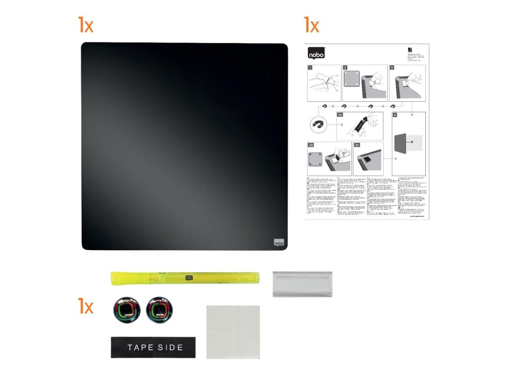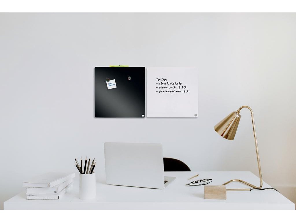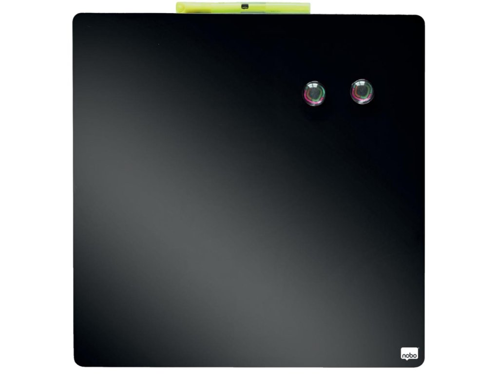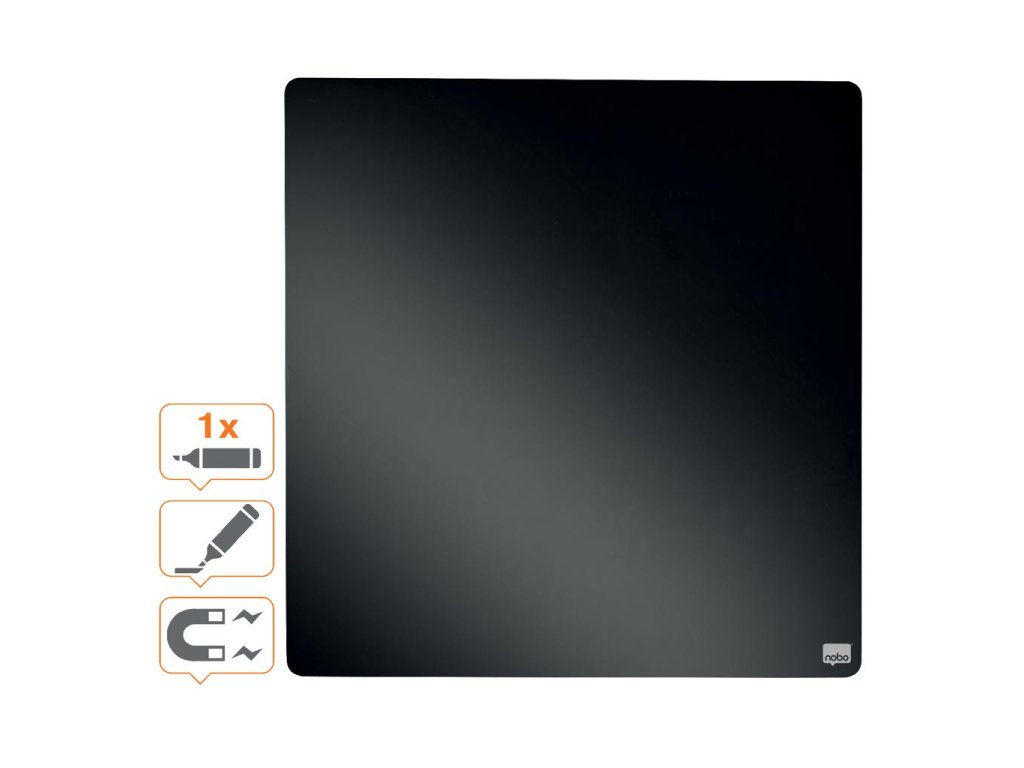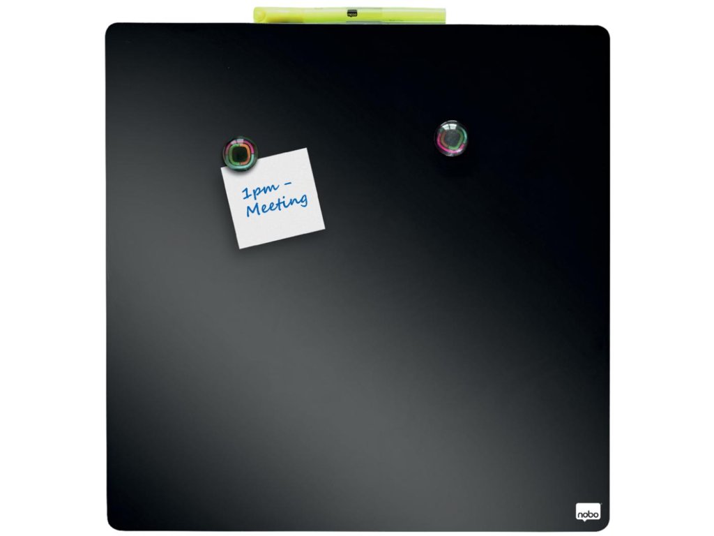 Kompaktné magnetické dielce stierateľné za sucha majú ideálnu veľkosť pre každý pracovný stôl, doma i v kancelárii. Obsahujú dva magnety, biely popisovač s mazacou hubou a montážnu penovú pásku. Farba: čierna. Rozmery 360 × 360 mm.
