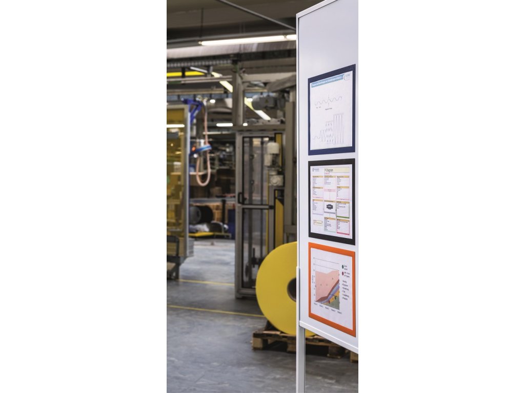 Informačný panel s magnetickou časťou na zadnej strane rámika na jednoduché a rýchle vkladanie informácie formátu A4. Vhodný na hladké magnetické povrchy, napr. magnetickú tabuľu. Farba oranžová. V balení 5 ks.