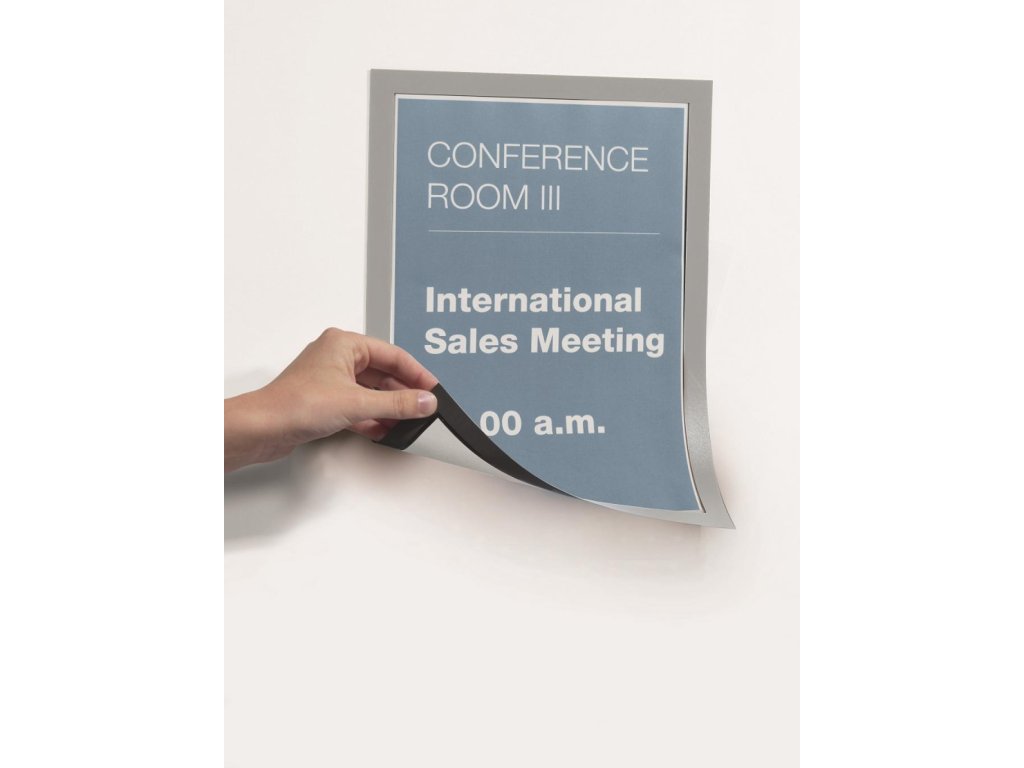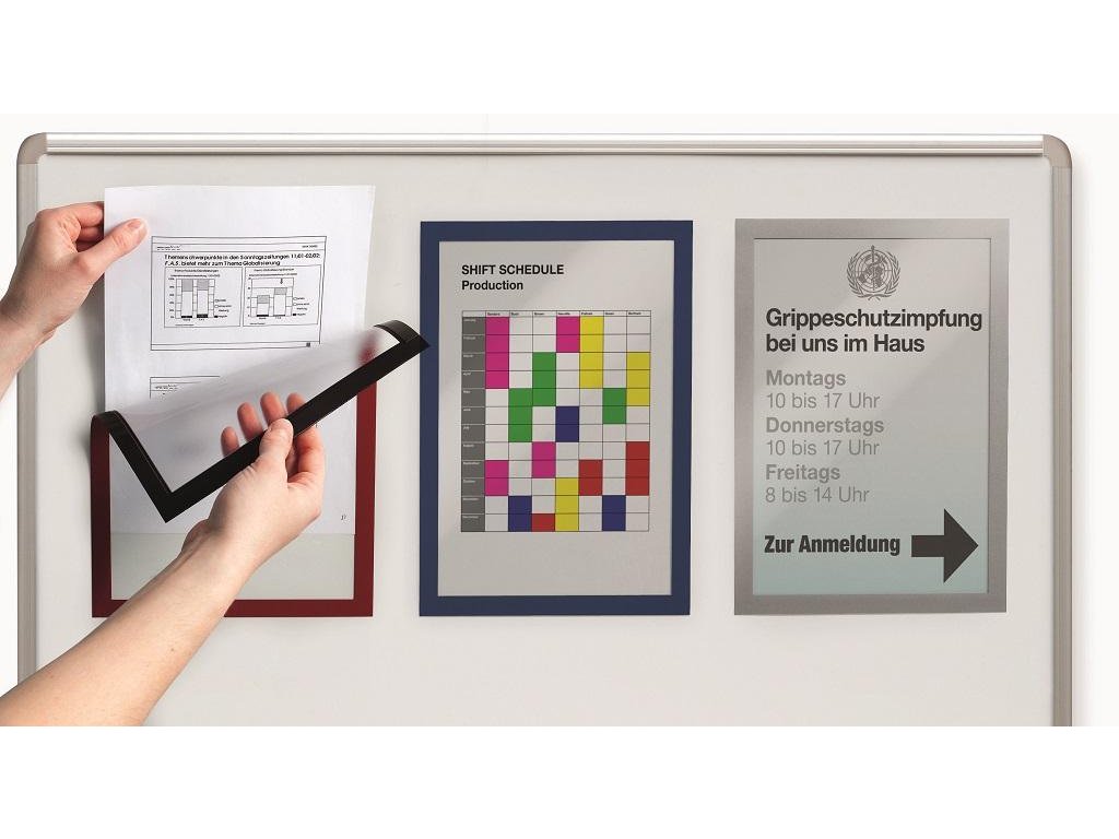 Informačný panel s magnetickou časťou na zadnej strane rámika na jednoduché a rýchle vkladanie informácie formátu A4. Vhodný na hladké magnetické povrchy, napr. magnetickú tabuľu. Farba strieborná. V balení 5 ks.