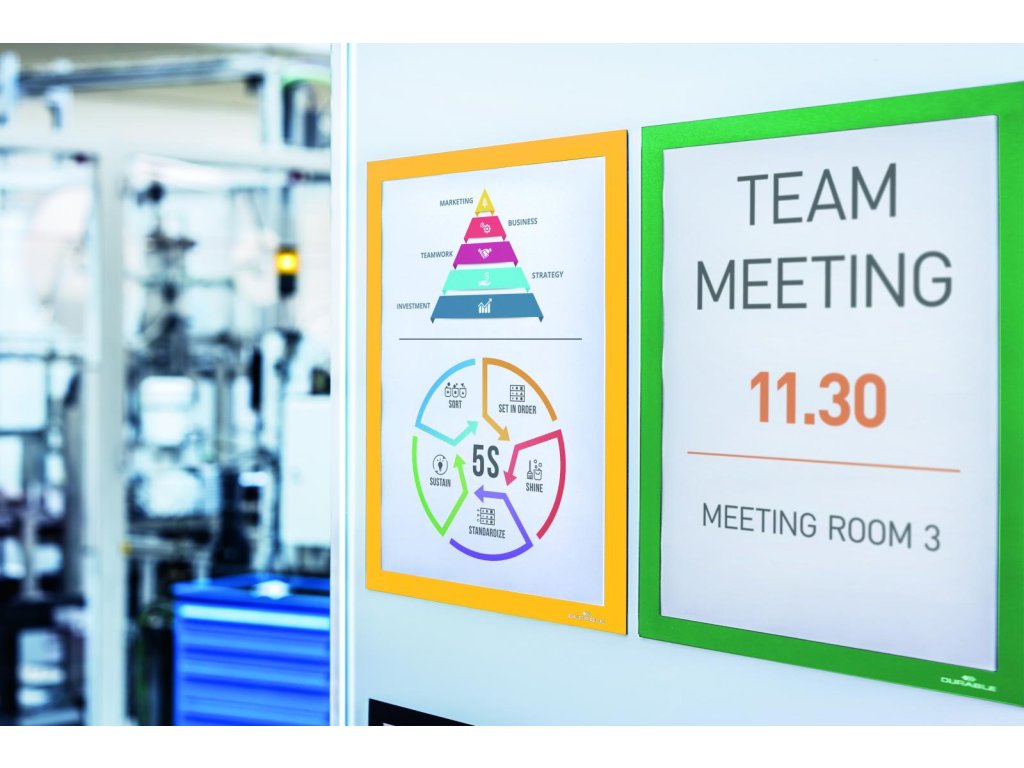 Informačný panel s magnetickou časťou na zadnej strane rámika na jednoduché a rýchle vkladanie informácie formátu A4. Vhodný na hladké magnetické povrchy, napr. magnetickú tabuľu. Farba žltá. V balení 5 ks.