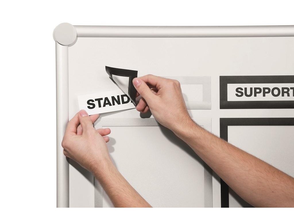 Informačný panel na titulky štruktúr informačných materiálov s magnetickou časťou na zadnej strane rámika na jednoduché a rýchle vkladanie informácie. Vonkajšie rozmery 236 × 66 mm, list na potlačenie 210 × 40 mm. Vhodný na hladké magnetické povrchy, napr. magnetickú tabuľu. Farba čierna. Balenie 5 ks.